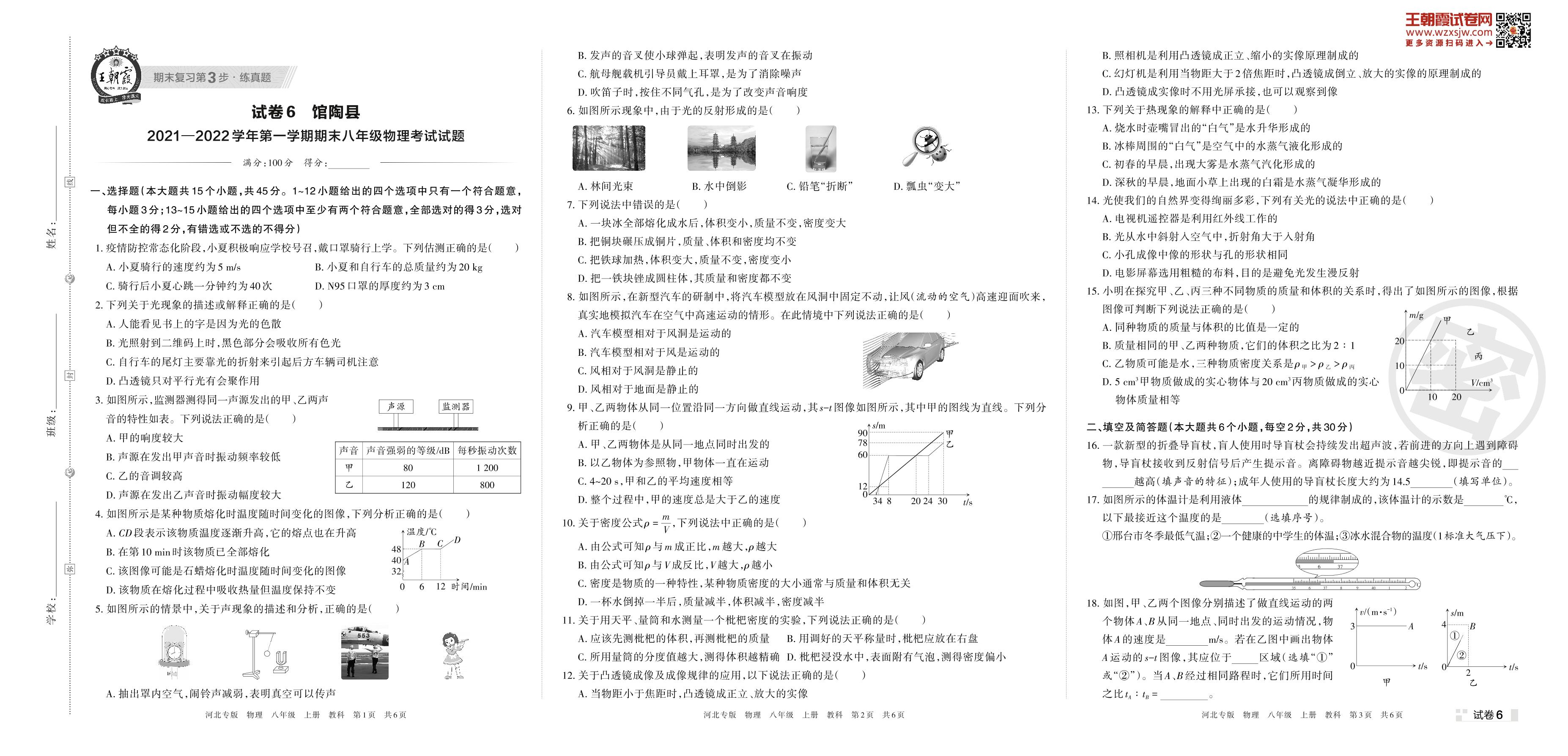 馆陶县2021—2022学年第一学期期末八年级物理考试试题(教科版)【6】