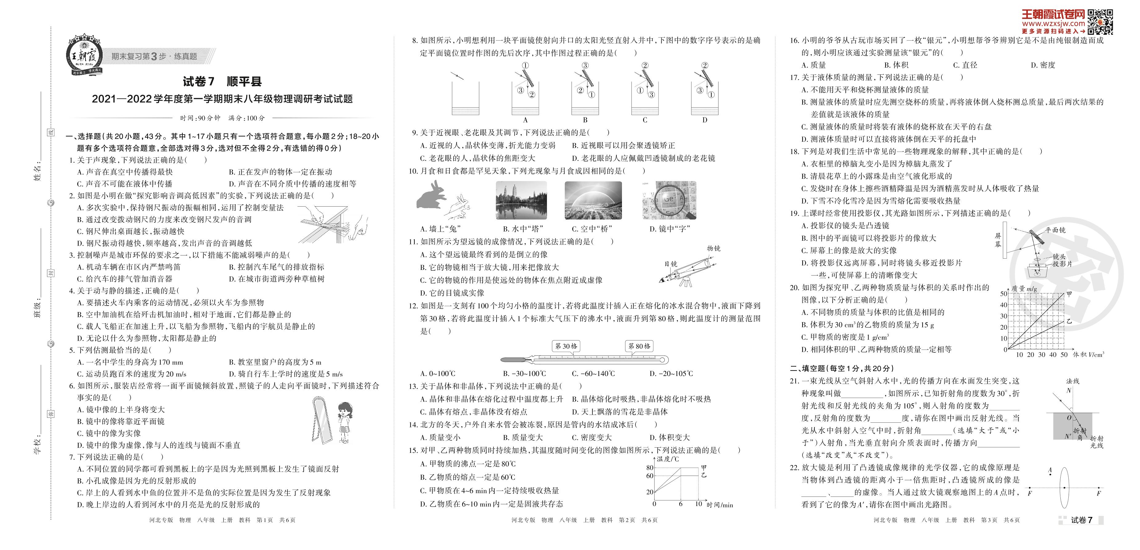 顺平县2021—2022学年度第一学期期末八年级物理调研考试试题(教科版)【7】