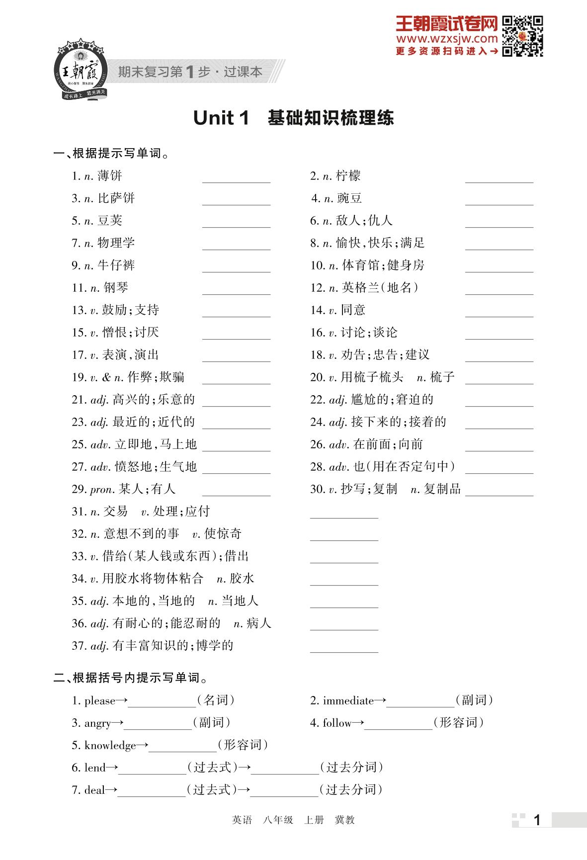 王朝霞期末过课本——Unit 1 基础知识梳理练八年级上册英语(冀教版)