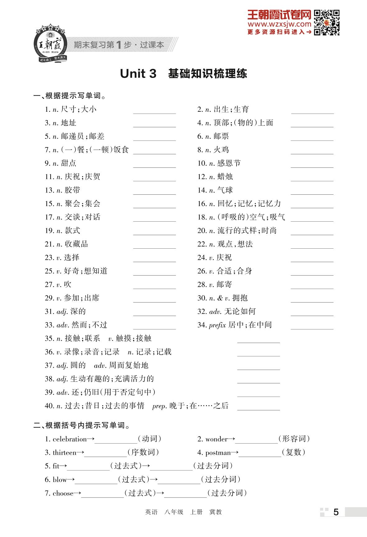 王朝霞期末过课本——Unit 3 基础知识梳理练八年级上册英语(冀教版)
