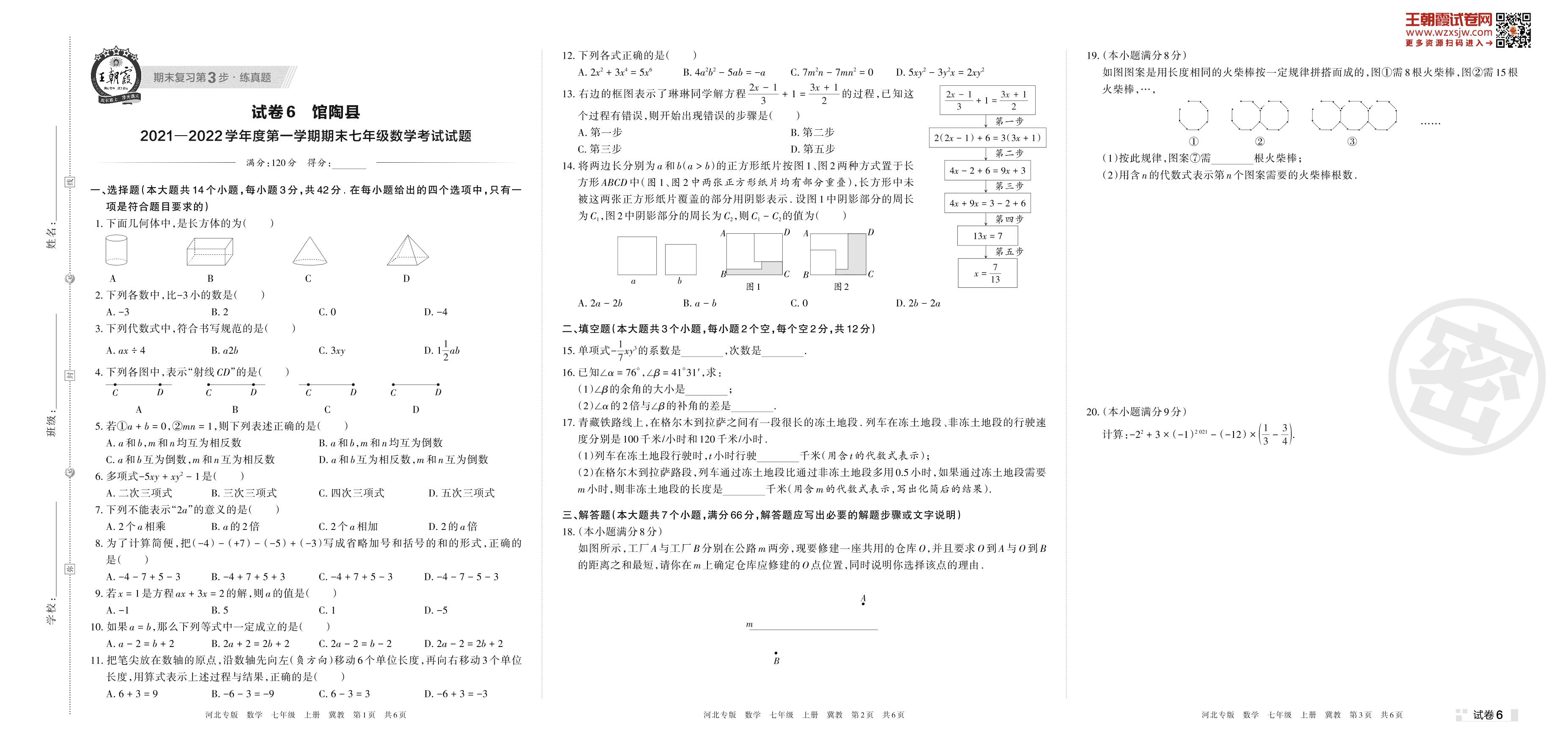 馆陶县2021—2022学年度第一学期期末七年级数学考试试题(冀教版)【6】