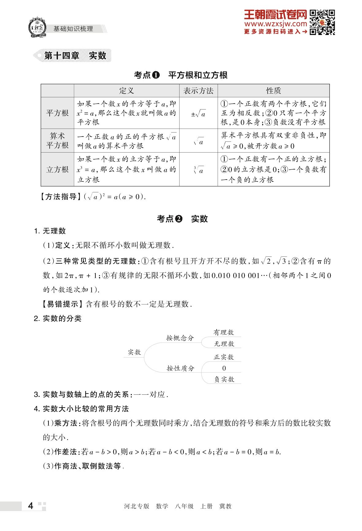 王朝霞期末知识梳理——第十四章 实数八年级上册数学(冀教版)