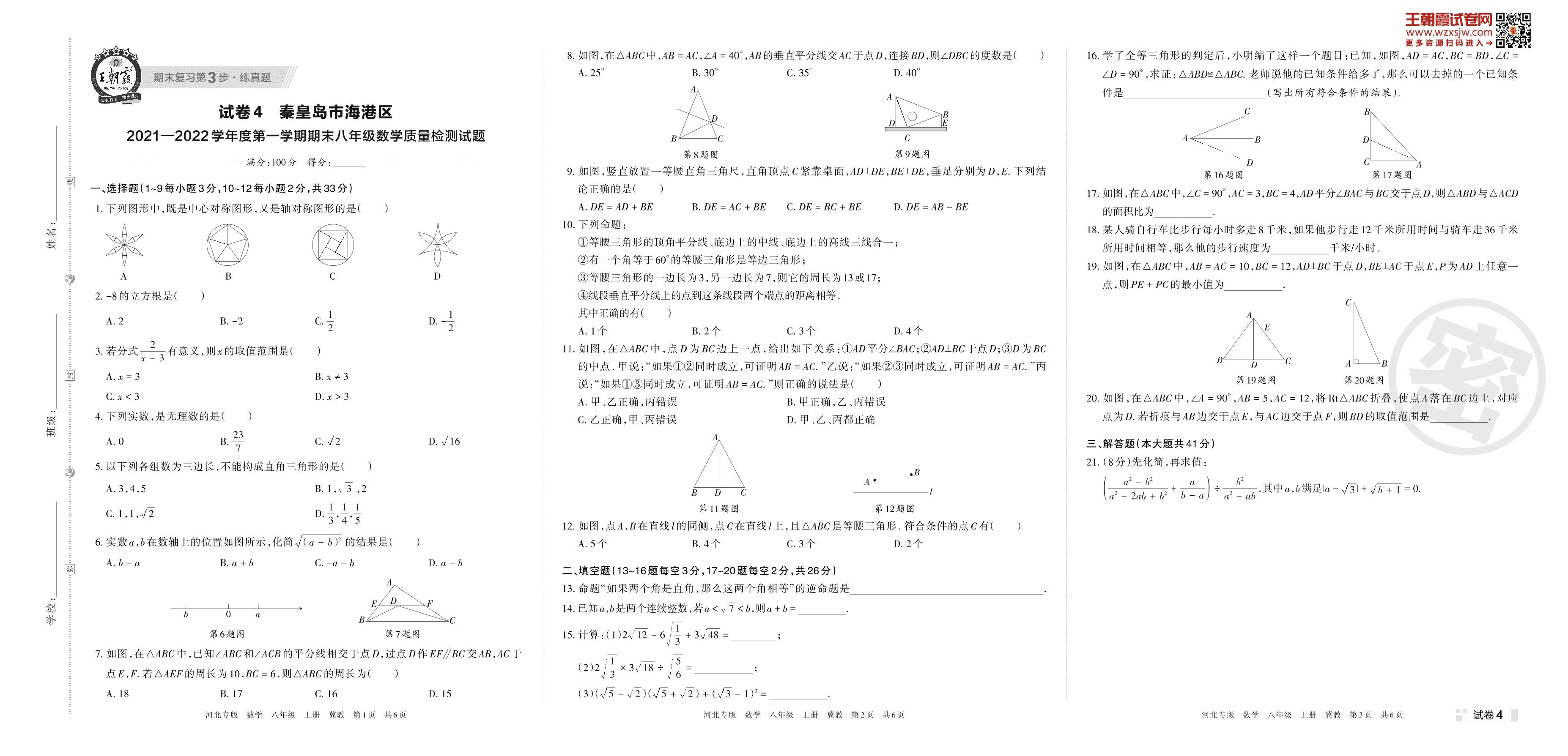 秦皇岛市海港区2021—2022学年度第一学期期末八年级数学质量检测试题(冀教版)【4】