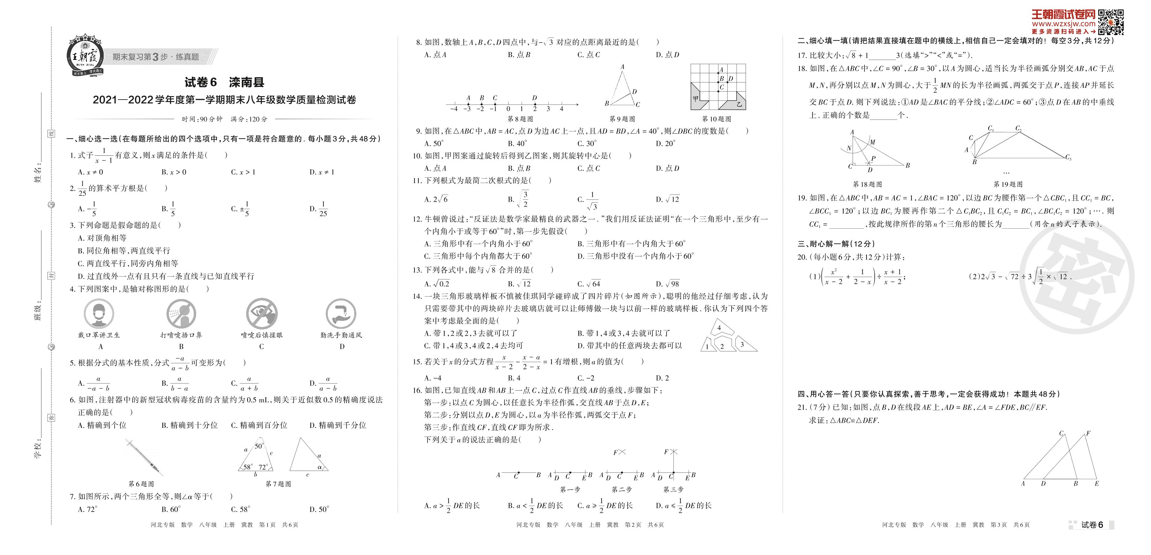 滦南县2021—2022学年度第一学期期末八年级数学质量检测试卷(冀教版)【6】