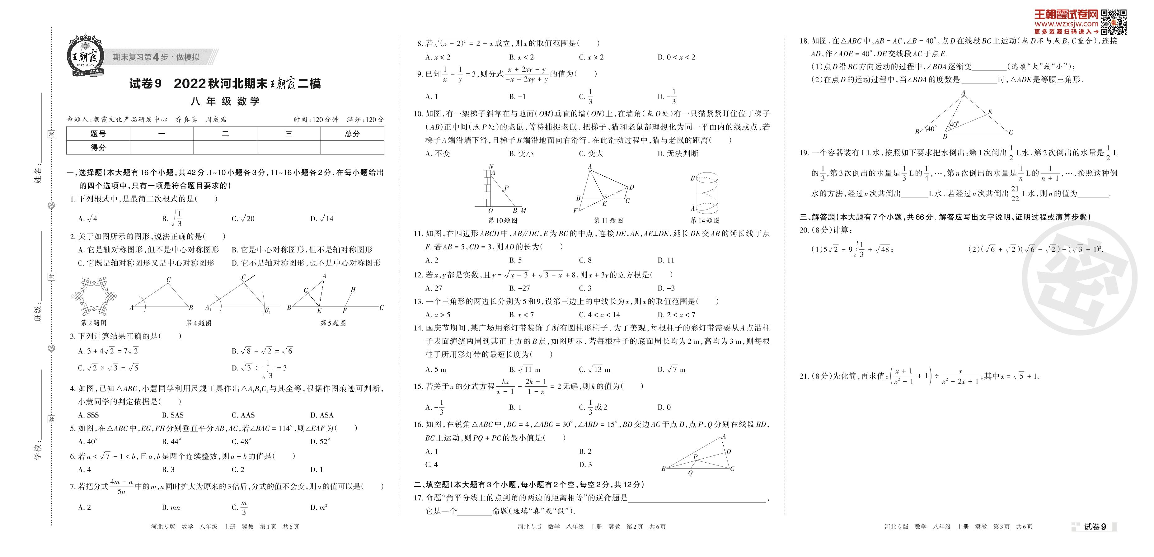 王朝霞期末模拟卷八年级上册数学(冀教版)_R221124171807095【9】