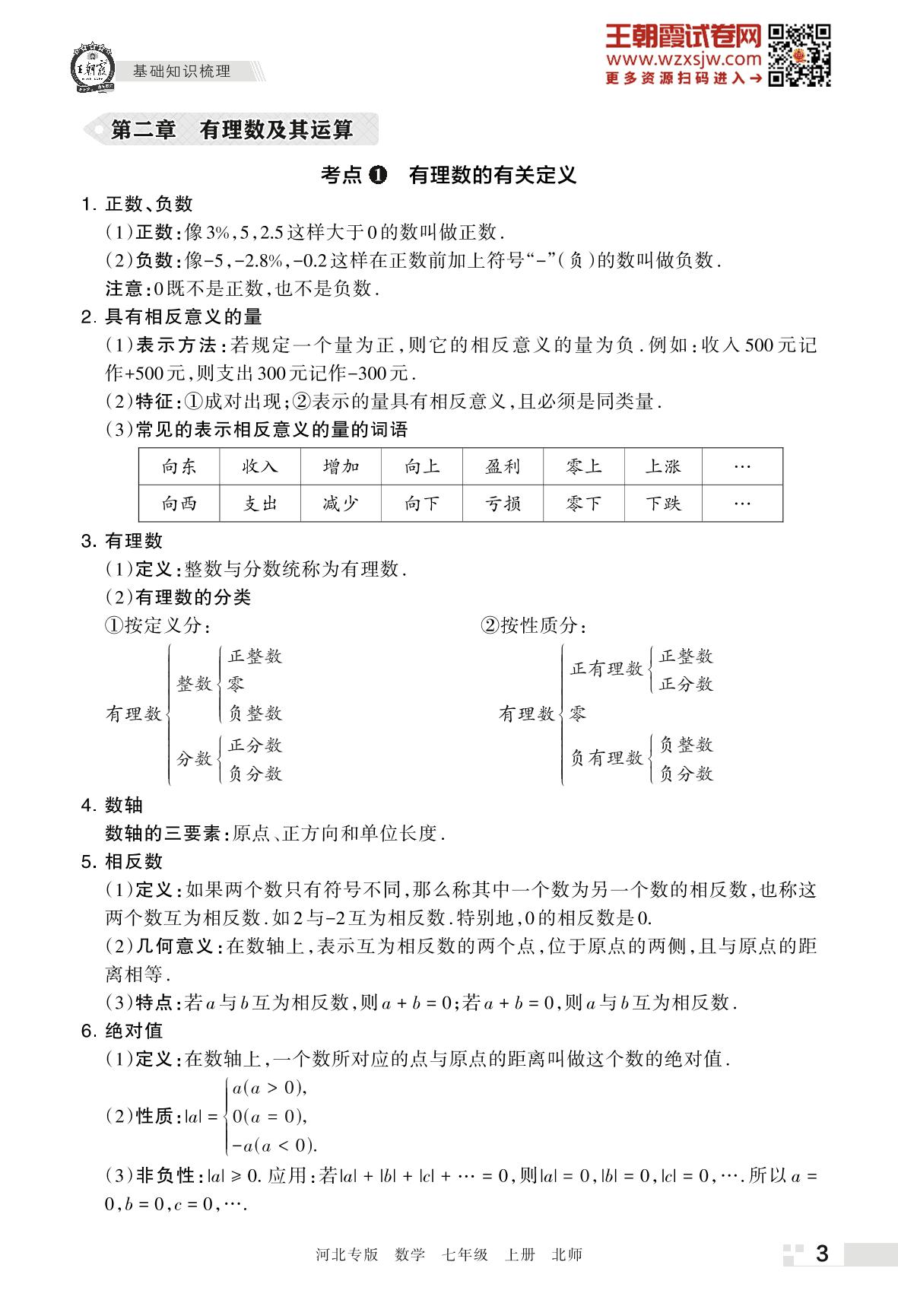 王朝霞期末知识梳理——第二章 有理数及其运算七年级上册数学(北师版)