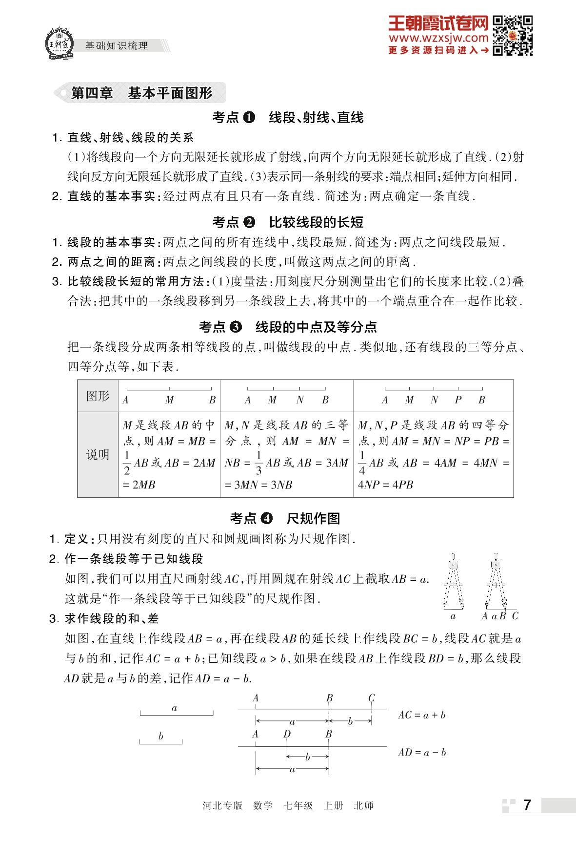 王朝霞期末知识梳理——第四章 基本平面图形七年级上册数学(北师版)
