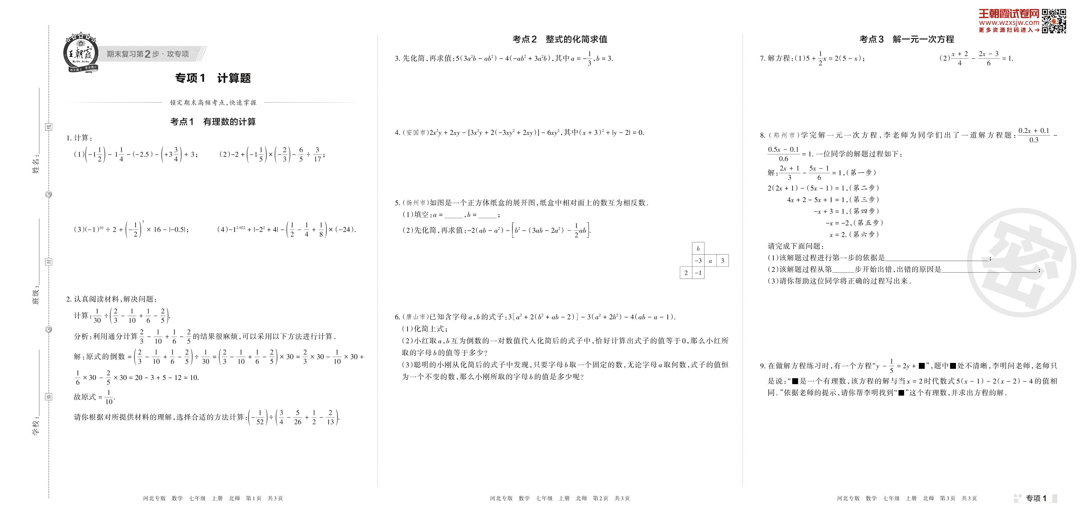 【易考专项】北师版·数学·七年级计算题(二)专项训练