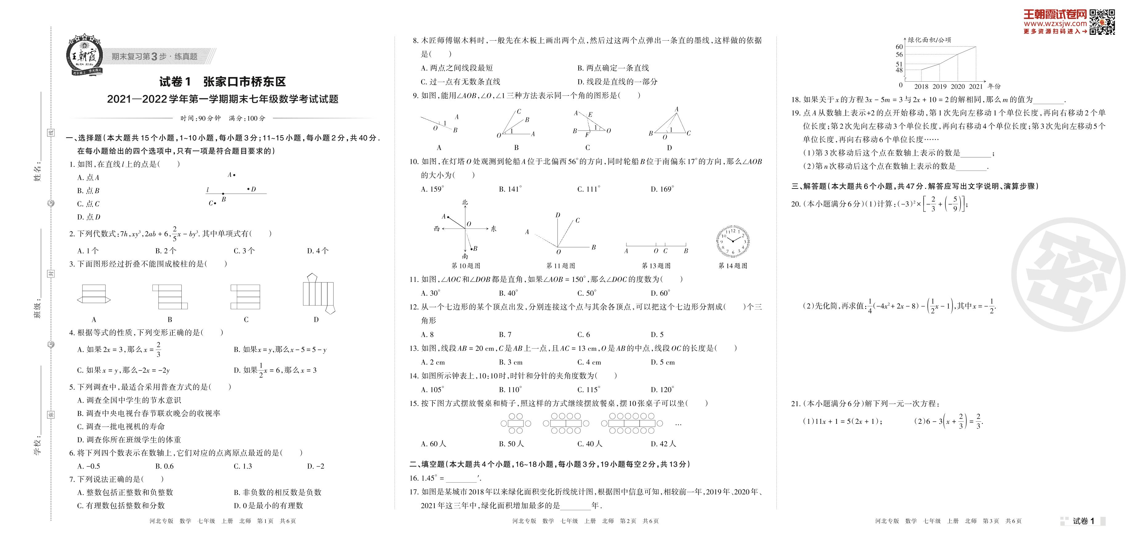 张家口市桥东区2021—2022学年第一学期期末七年级数学考试试题(北师版)【1】