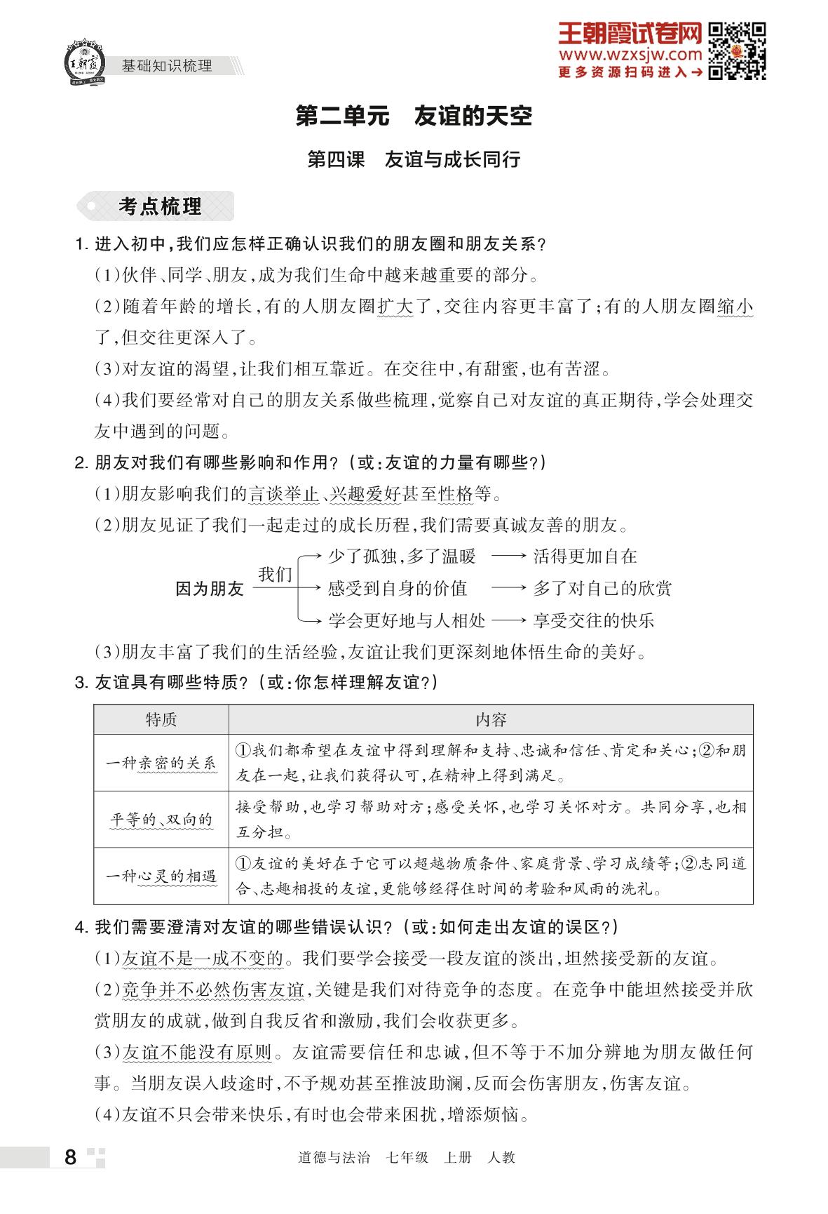 王朝霞期末过课本——第二单元 友谊的天空七年级上册道德与法治(人教版)_R221124173838312