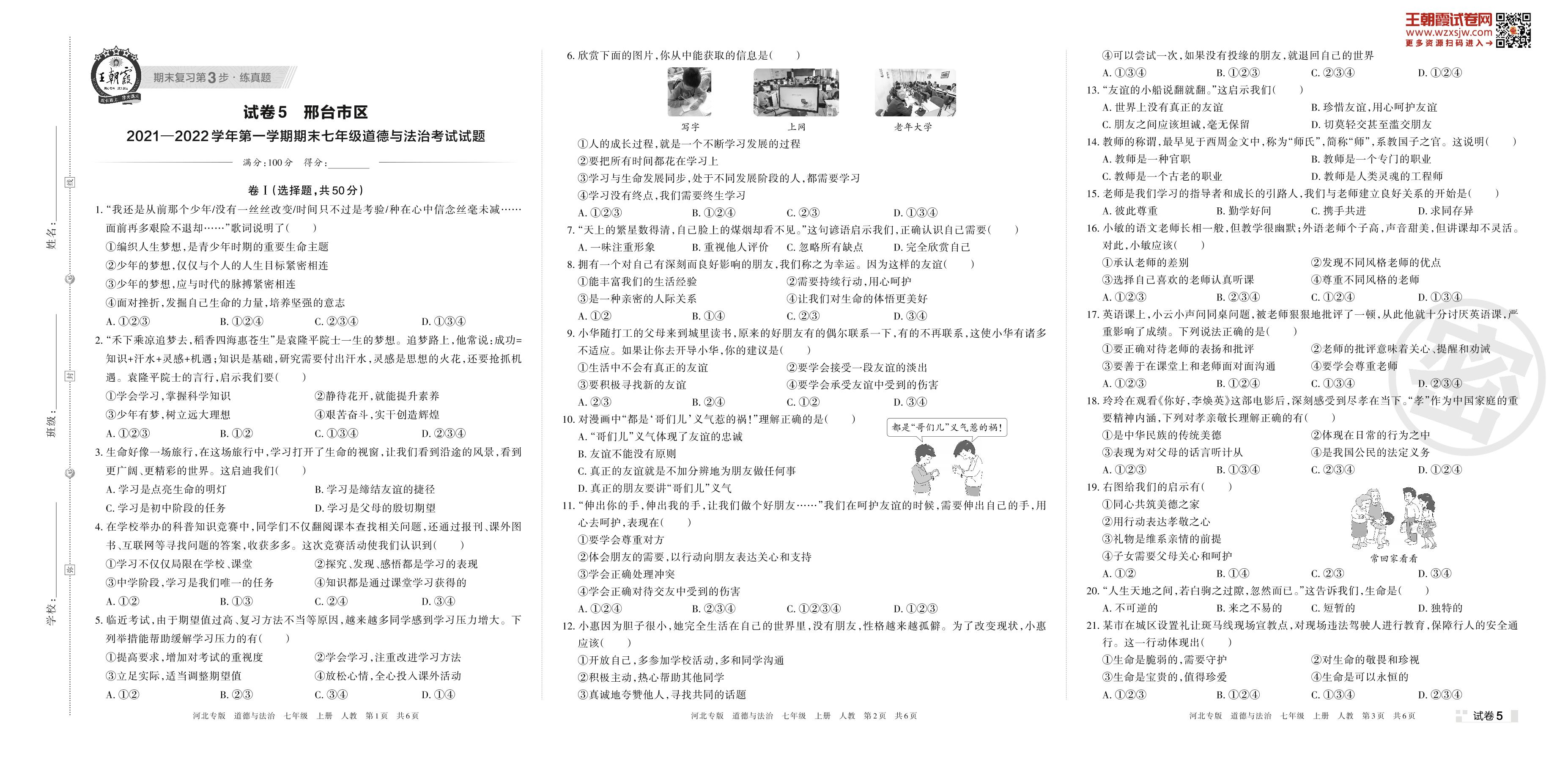邢台市区2021—2022学年第一学期期末七年级道德与法治考试试题(人教版)【5】