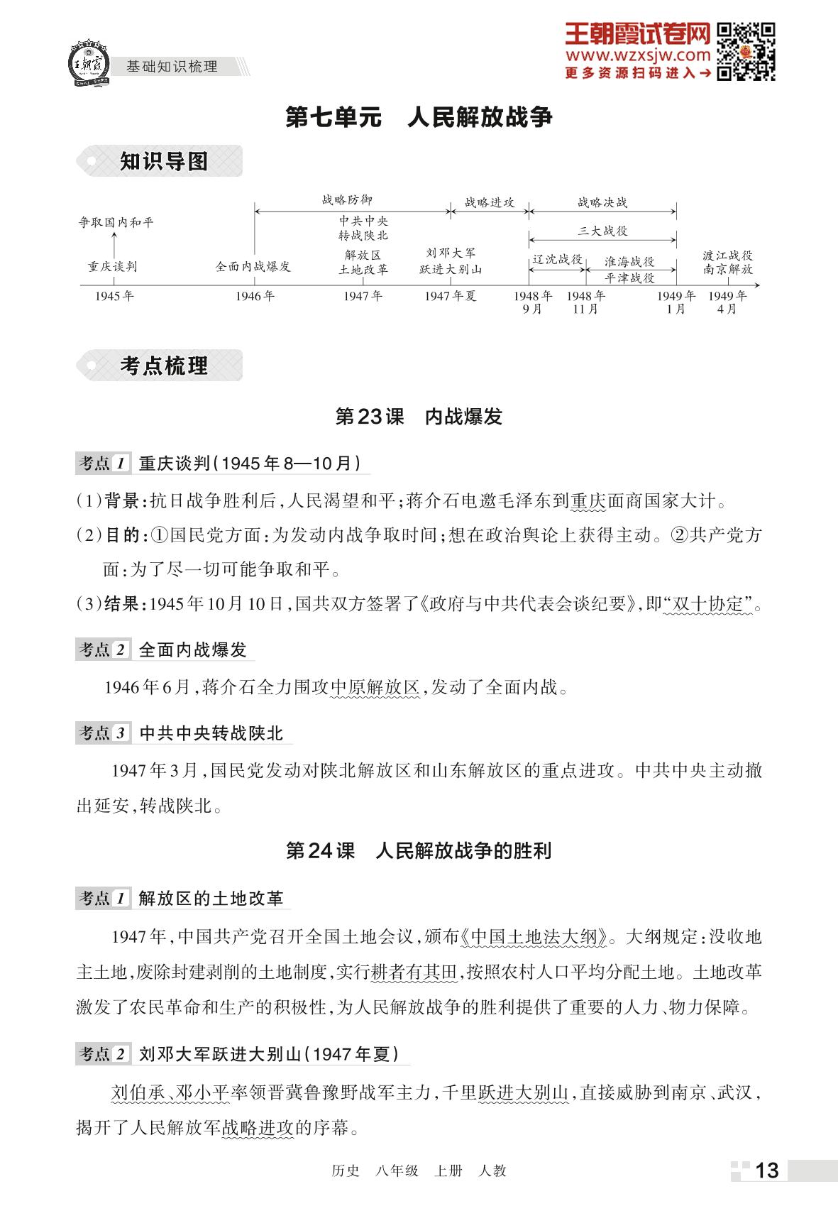 王朝霞期末过课本——第七单元 人民解放战争八年级上册历史(人教版)_R221124174418923
