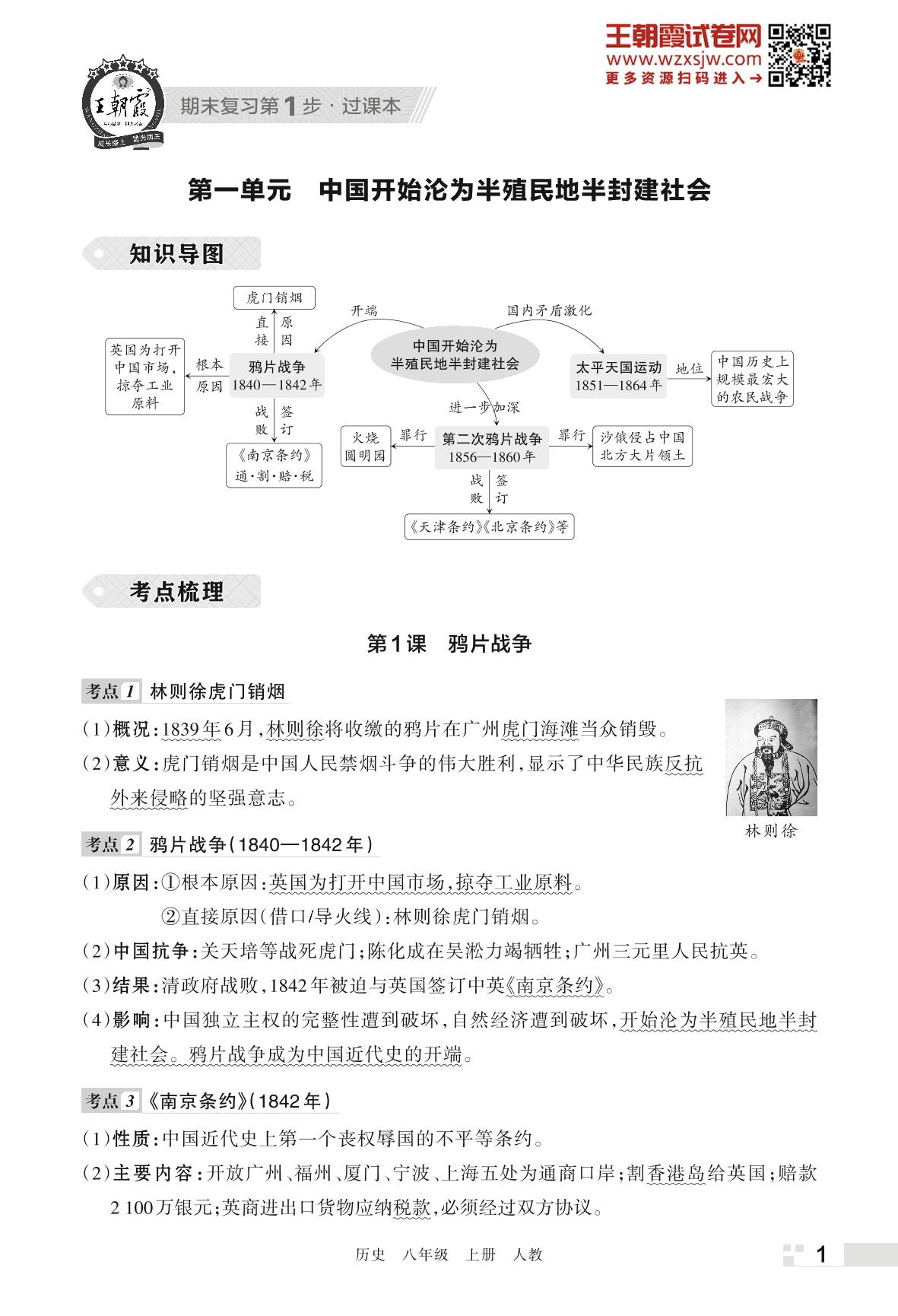 王朝霞期末过课本——第一单元 中国开始沦为半殖民地半封建社会八年级上册历史(人教版)_R221124174419300