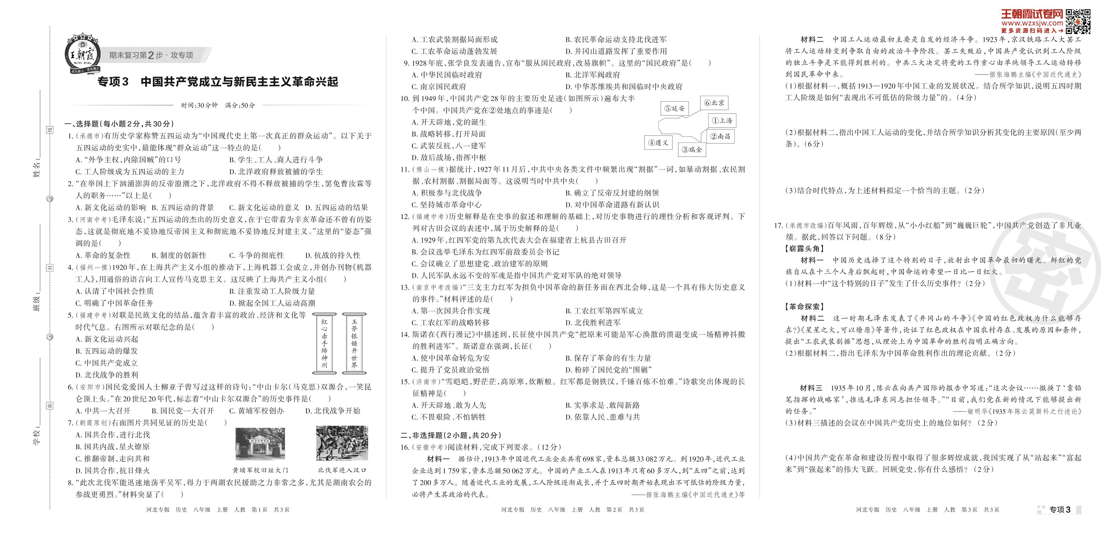 王朝霞期末专项卷——中国共产党成立与新民主主义革命兴起八年级上册历史(人教版)_R221124174419271【3】