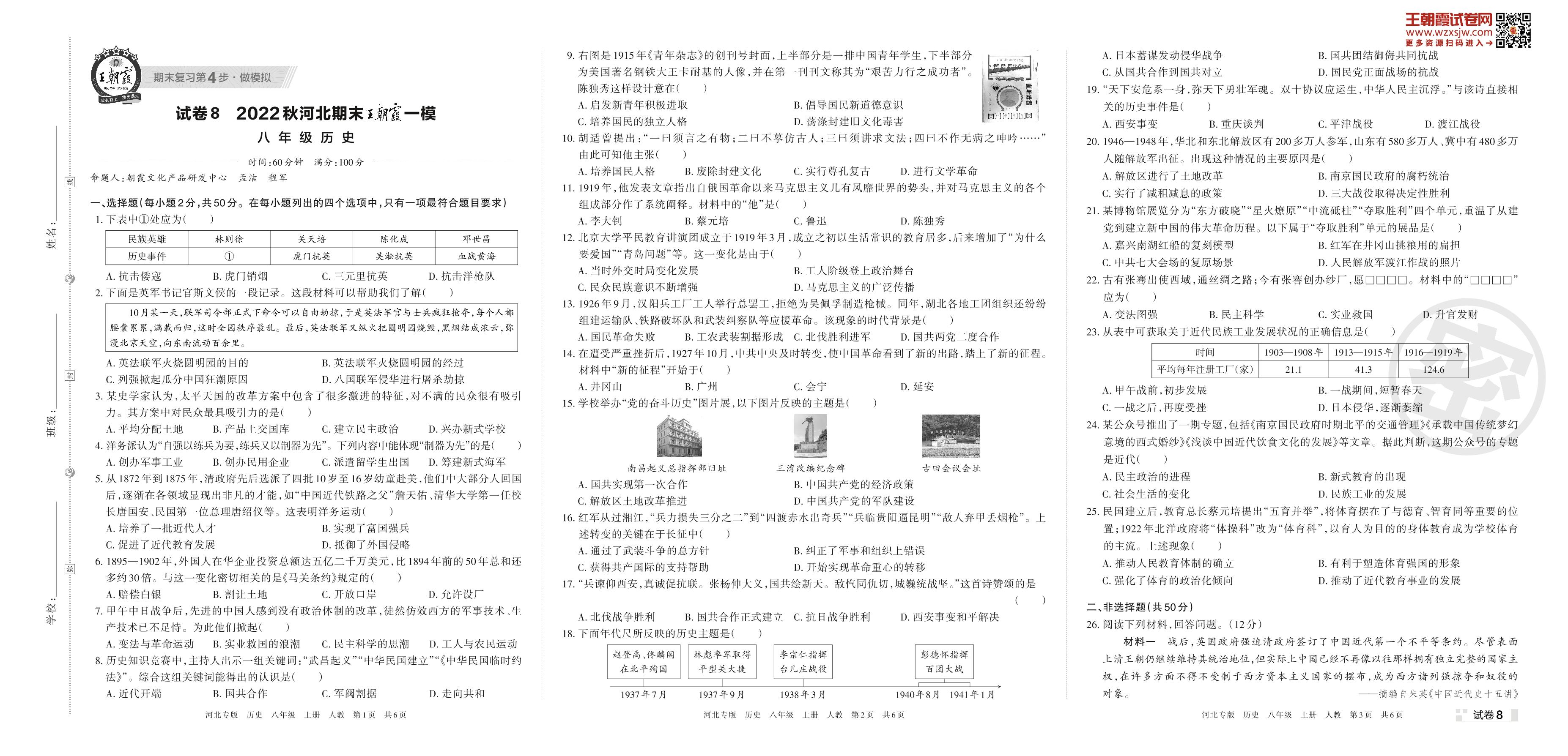 王朝霞期末模拟卷八年级上册历史(人教版)_R221124174421937【8】