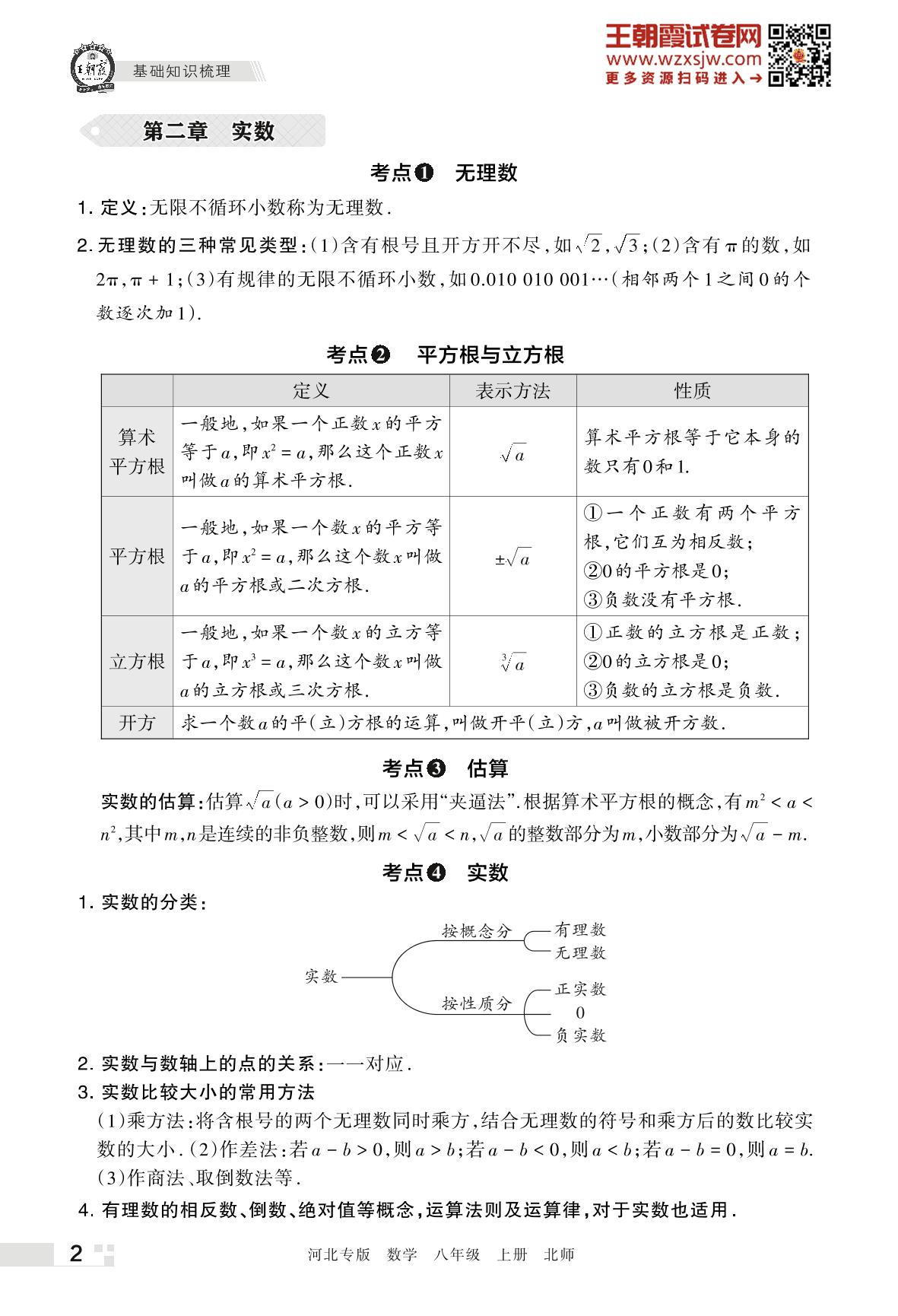 王朝霞期末知识梳理——第二章 实数八年级上册数学(北师版)
