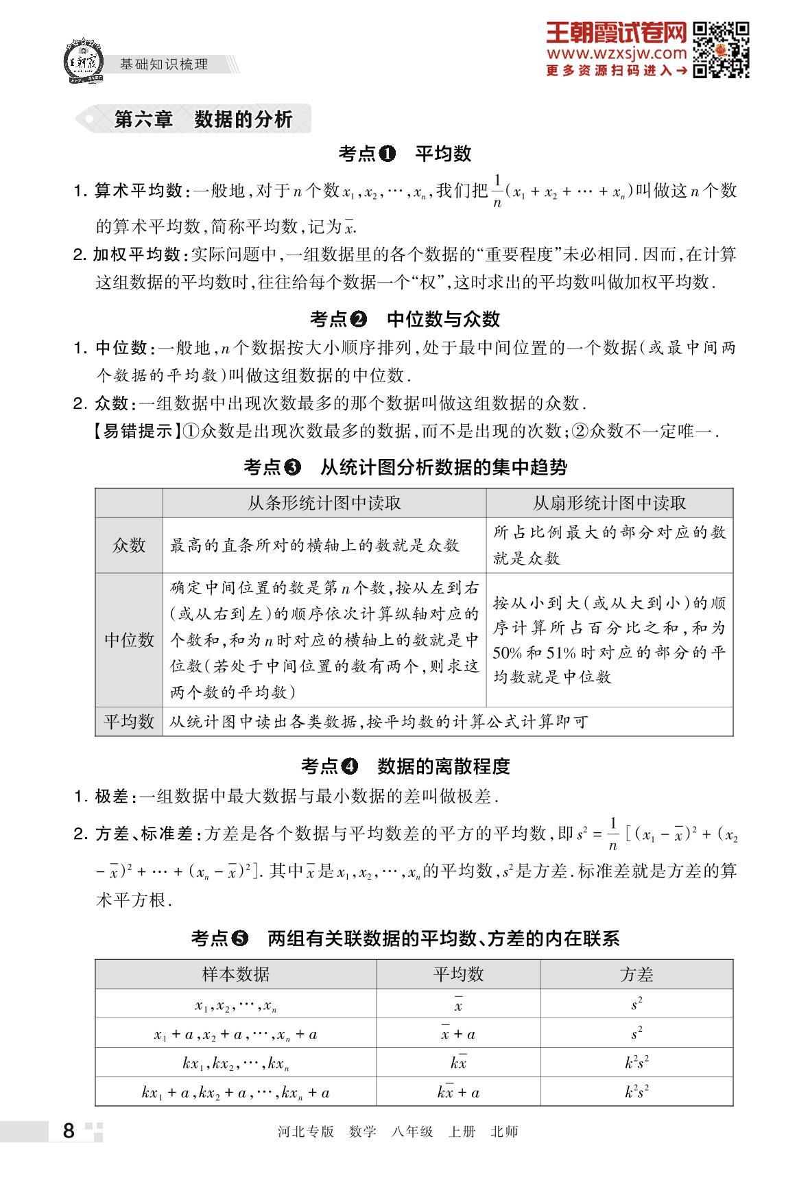 王朝霞期末知识梳理——第六章 数据的分析八年级上册数学(北师版)