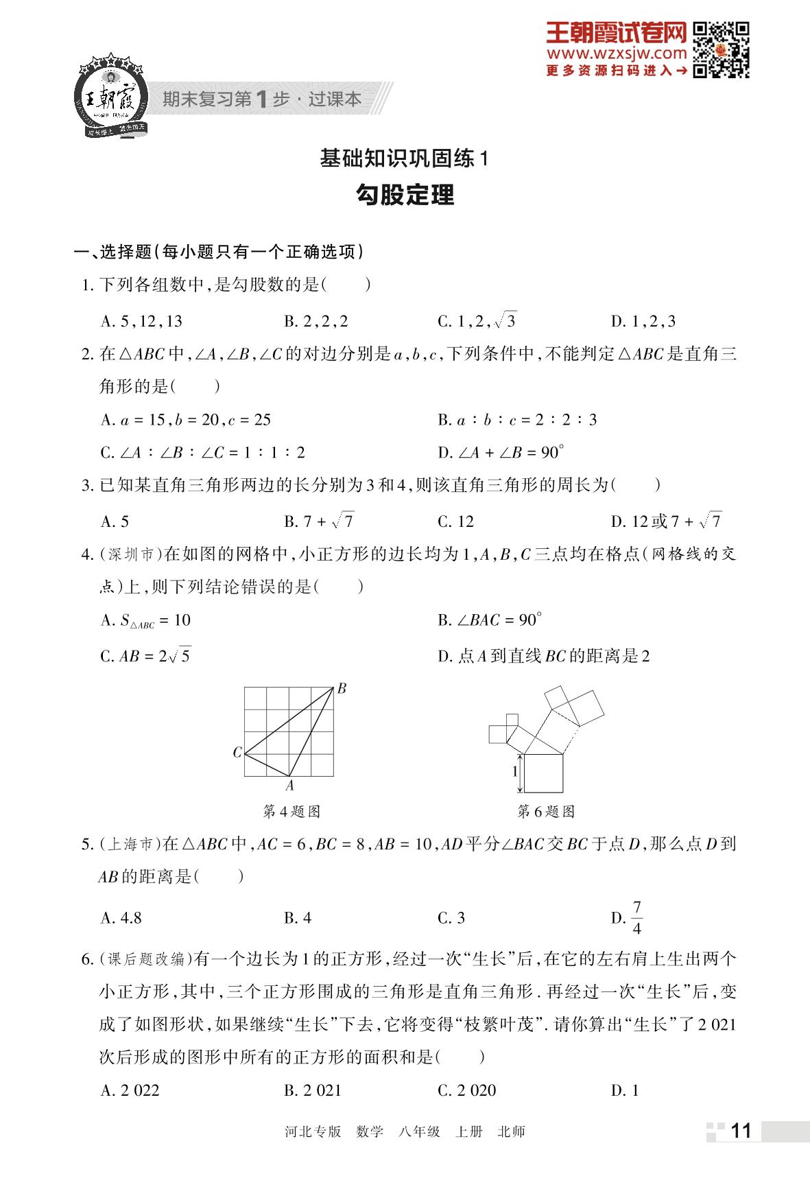 王朝霞期末过课本——基础知识巩固练1 勾股定理八年级上册数学(北师版)