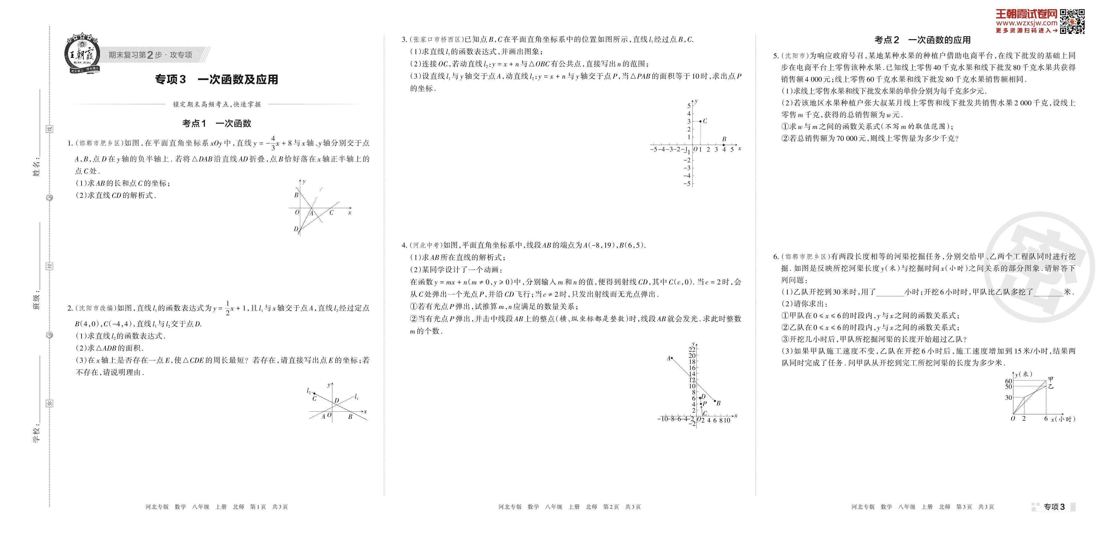 王朝霞期末专项卷——一次函数及应用八年级上册数学(北师版)_R221124175418050【3】