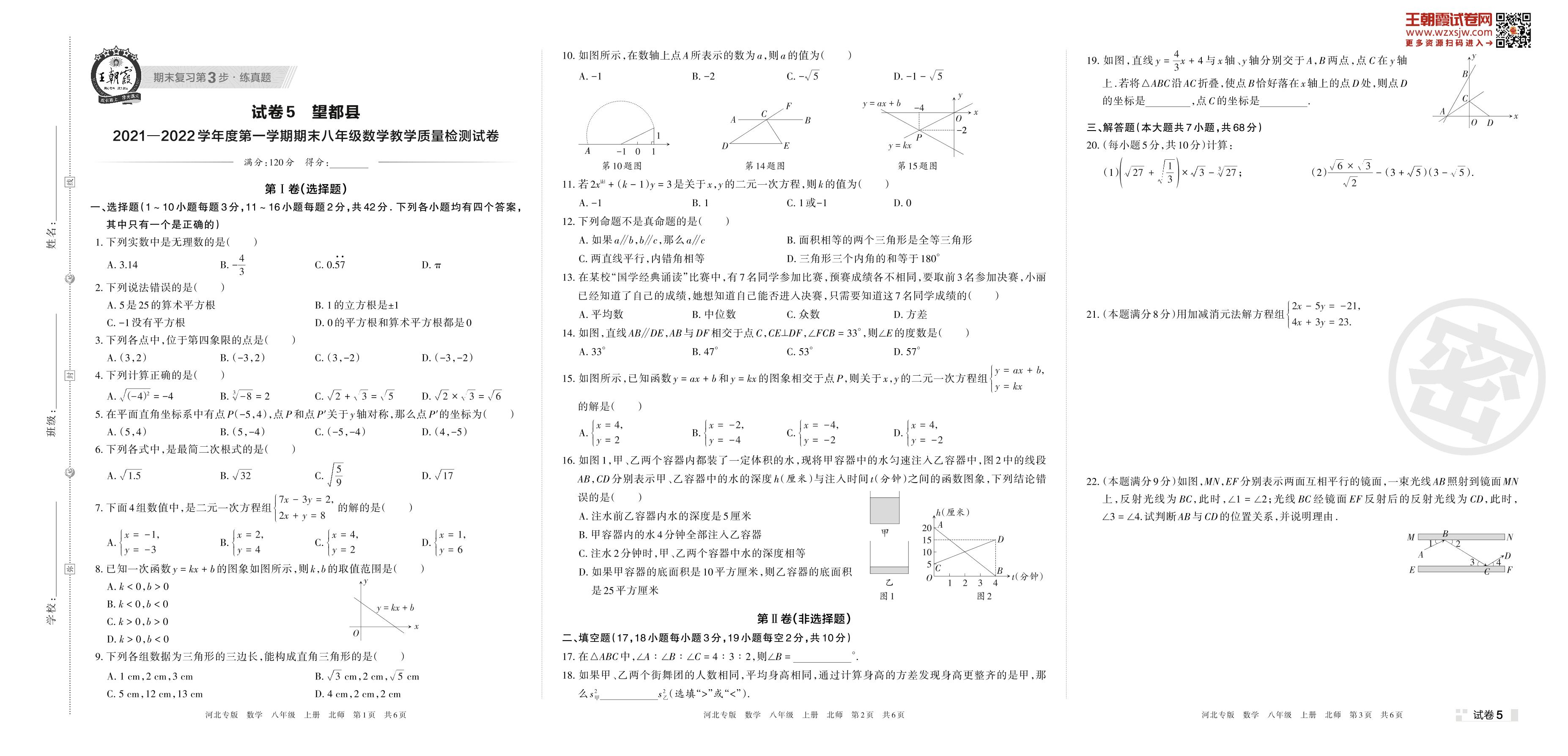 望都县2021—2022学年度第一学期期末八年级数学教学质量检测试卷(北师版)【5】