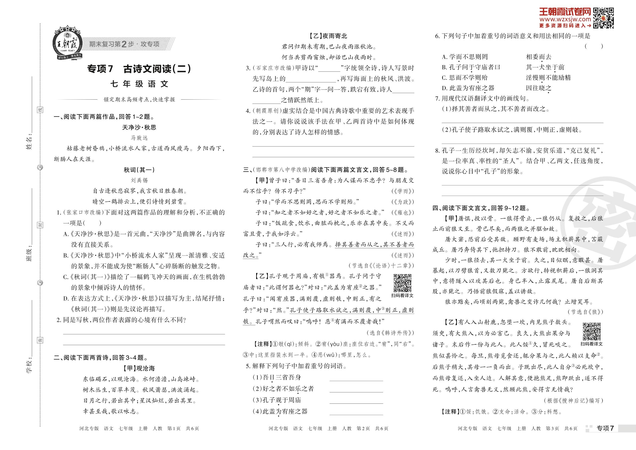 王朝霞期末专项卷——古诗文阅读(二)七年级上册语文(人教版)【7】