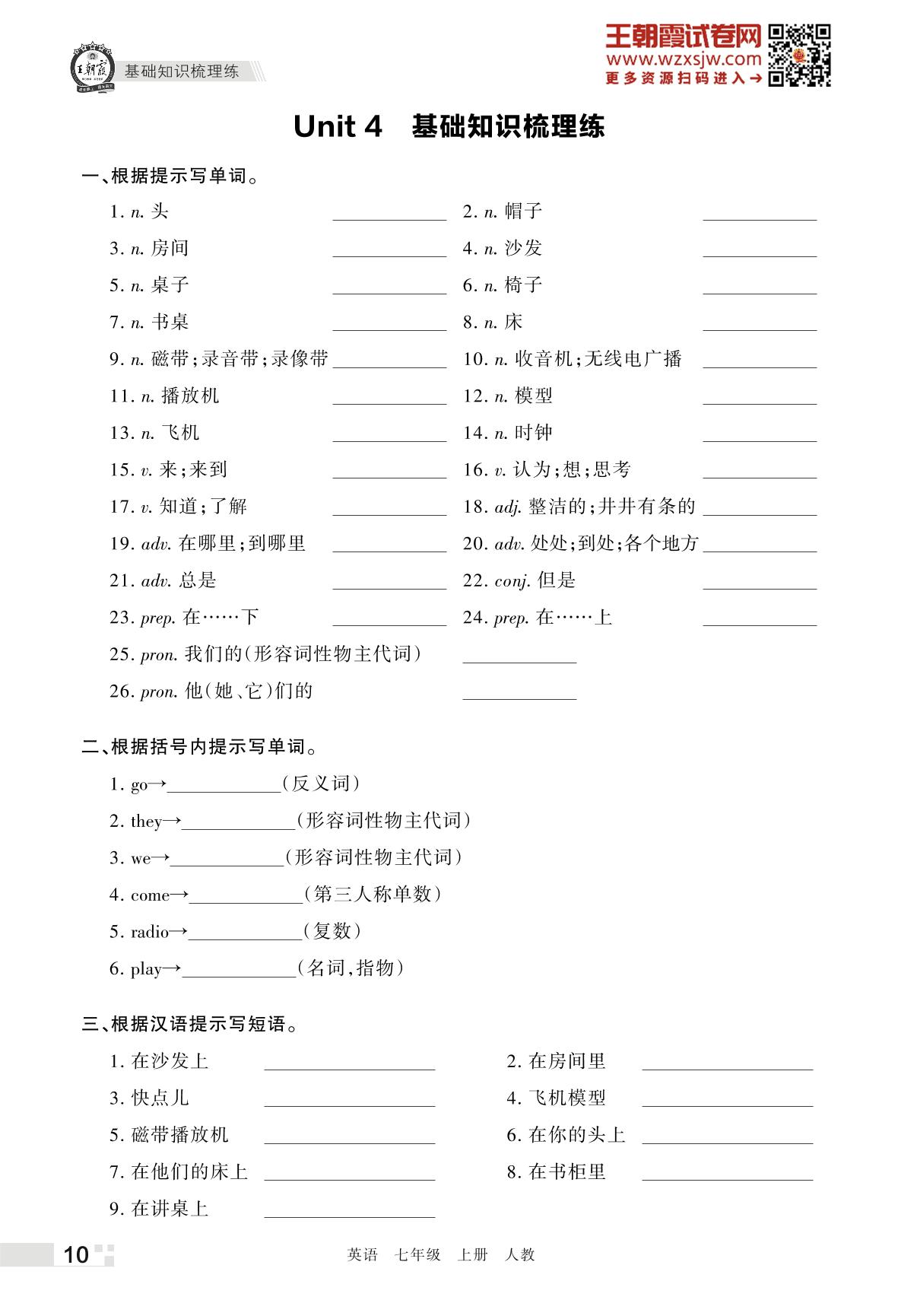 王朝霞期末过课本——Unit 4 基础知识梳理练七年级上册英语(人教版)_R221125112300062