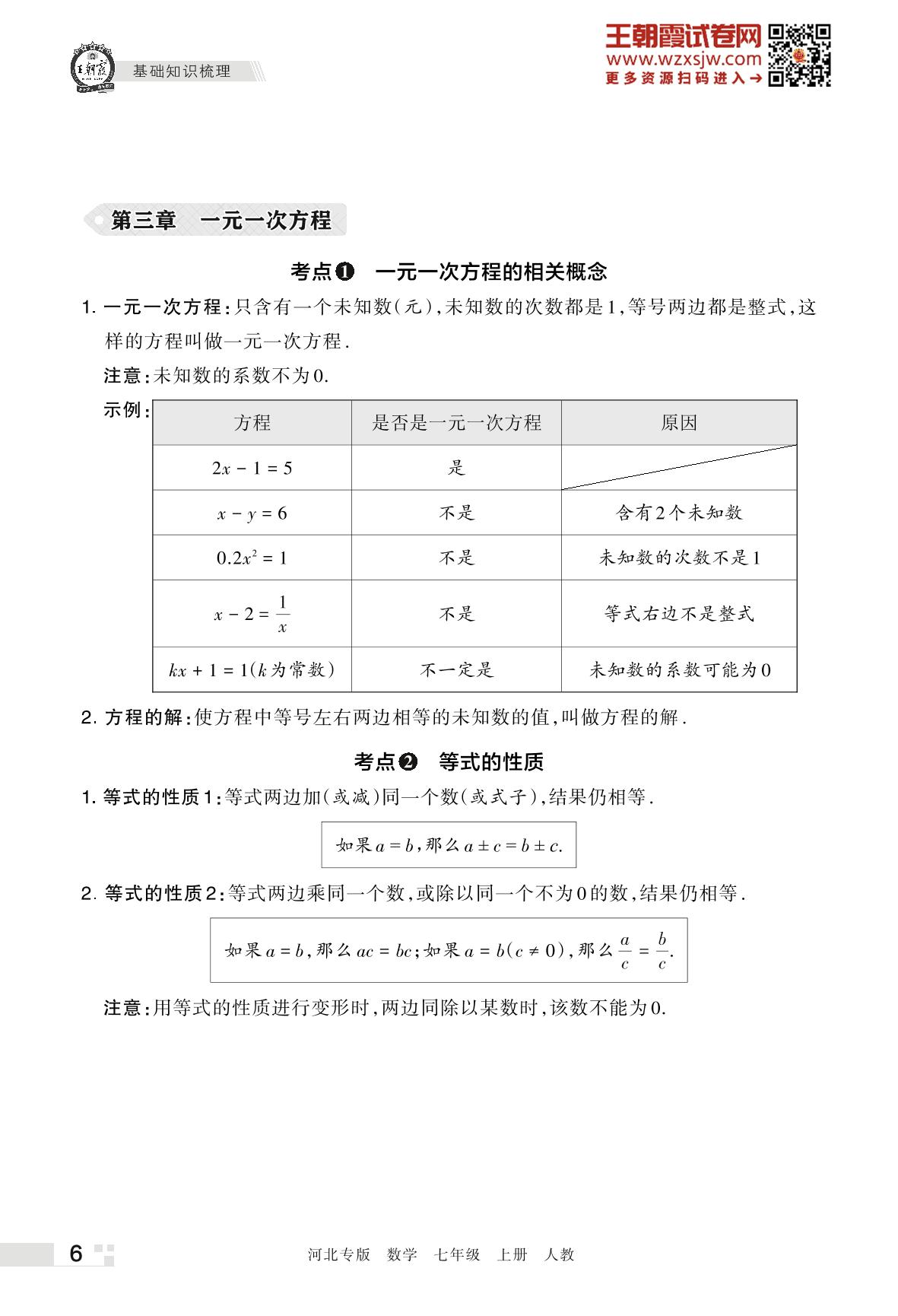 王朝霞期末知识梳理——第三章 一元一次方程七年级上册数学(人教版)_R221125113041368