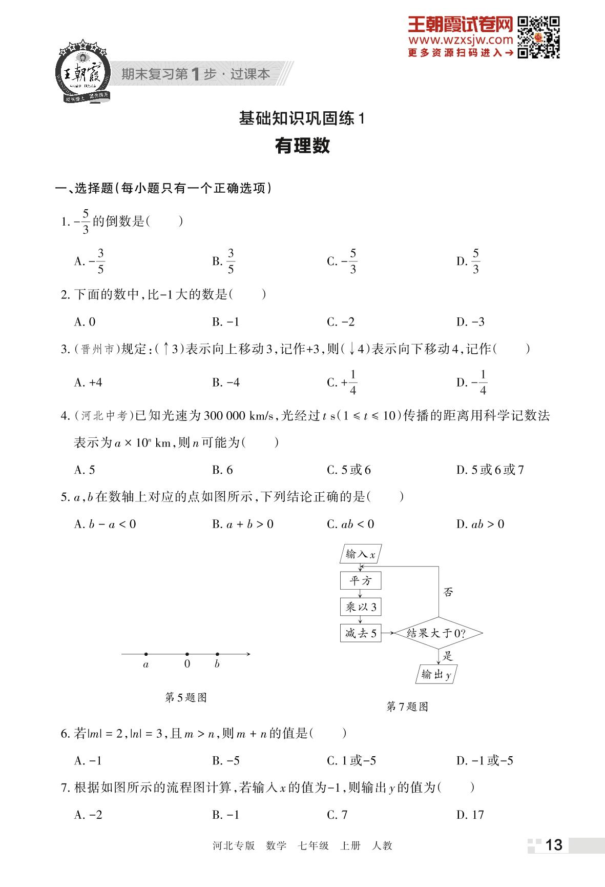 王朝霞期末过课本——基础知识巩固练1 有理数七年级上册数学(人教版)