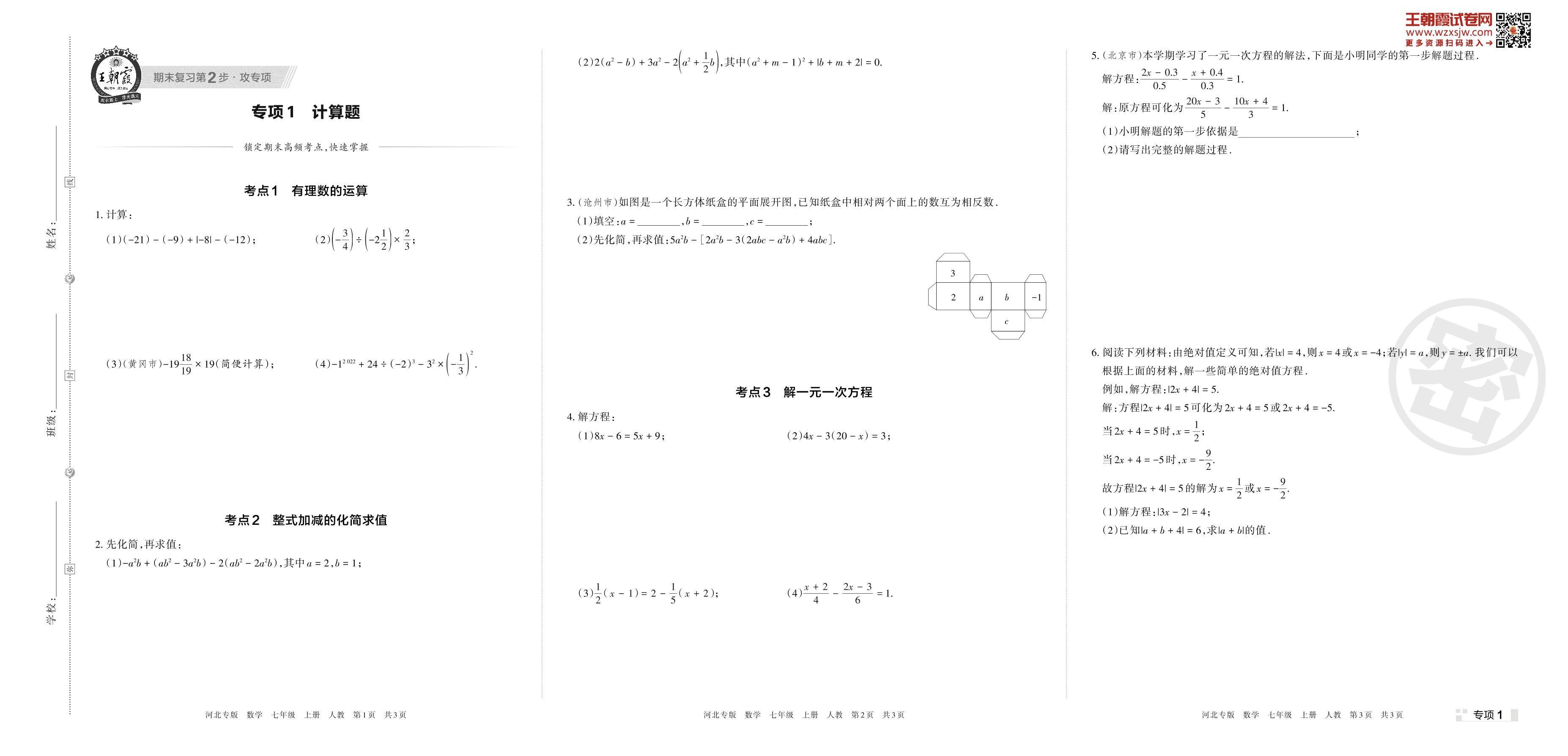 王朝霞期末专项卷——计算题七年级上册数学(人教版)_R221125113042419【1】