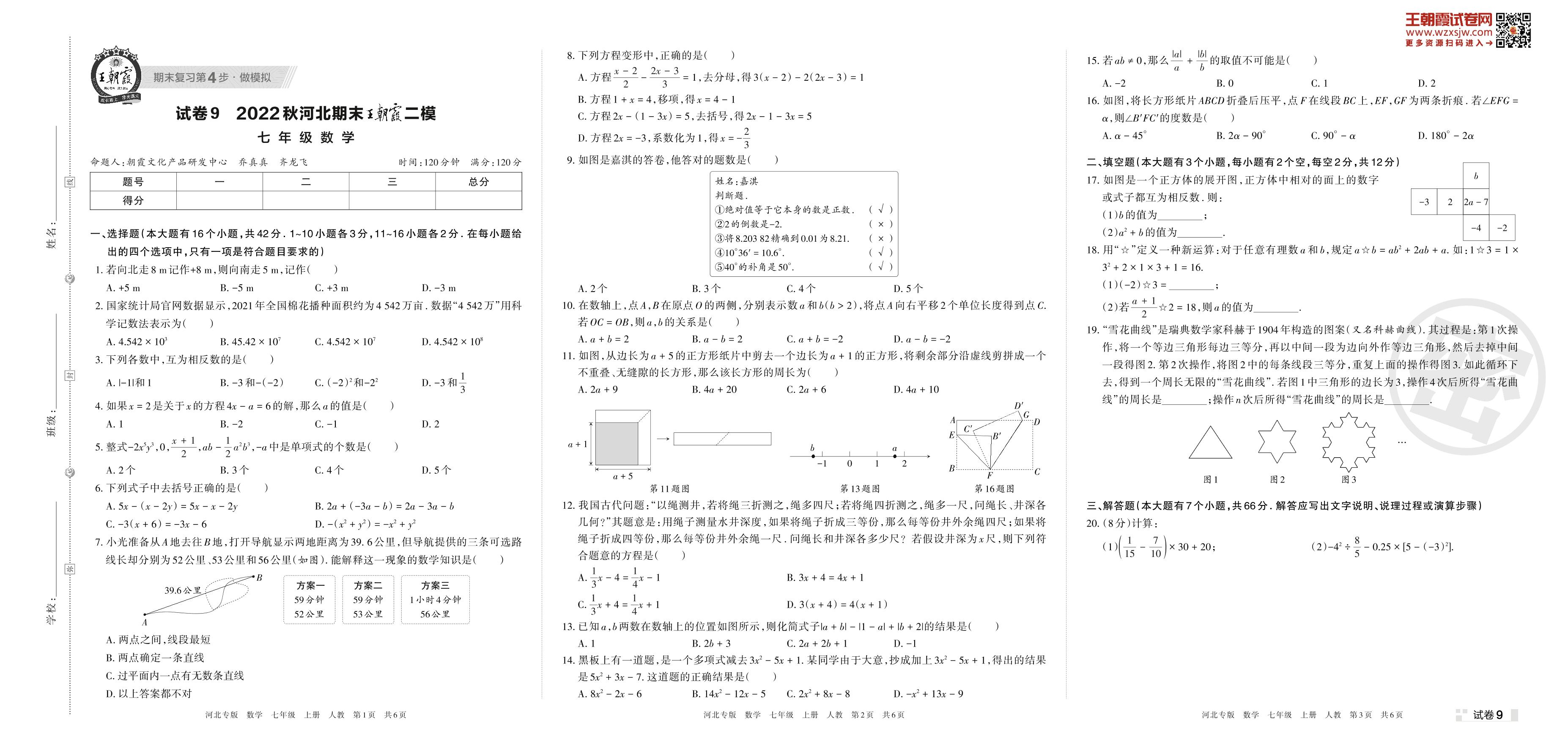 王朝霞期末模拟卷七年级上册数学(人教版)_R221125113044816【9】