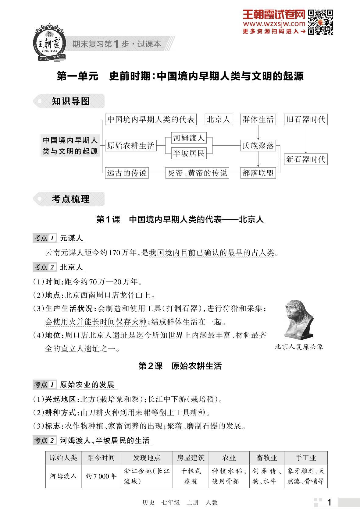 王朝霞期末过课本——第一单元 史前时期:中国境内早期人类与文明的起源七年级上册历史(人教版)_R221125113708284
