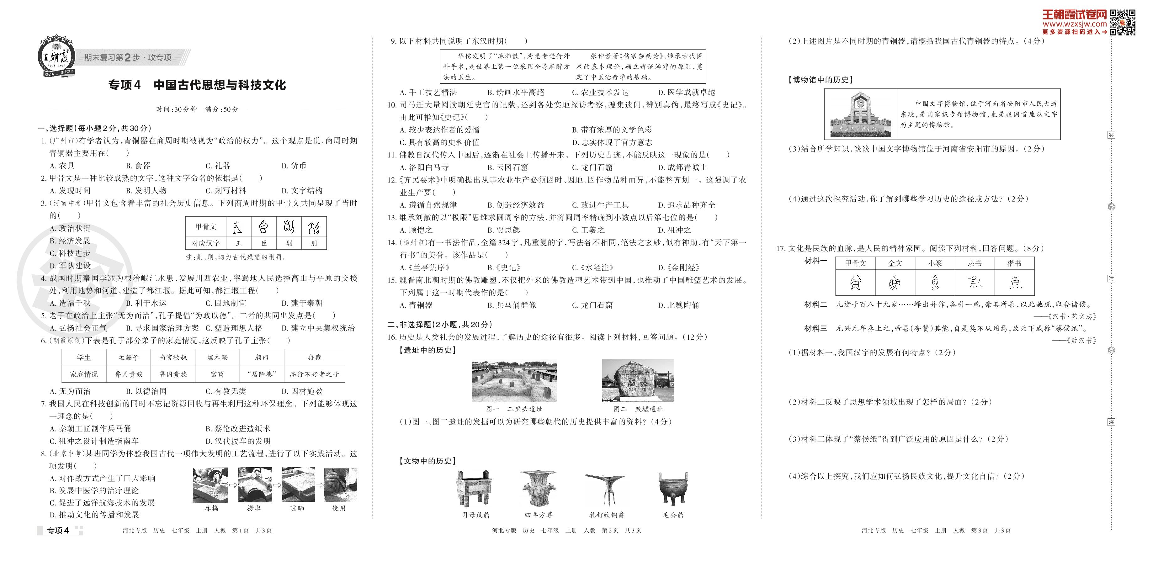 王朝霞期末专项卷——中国古代思想与科技文化七年级上册历史(人教版)_R221125113709659【4】