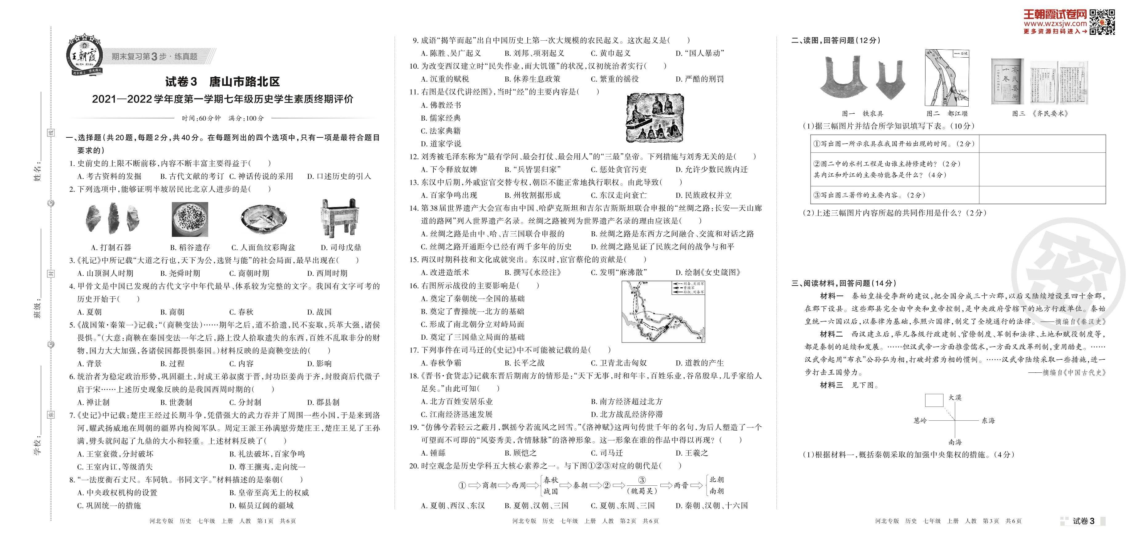 唐山市路北区2021—2022学年度第一学期七年级历史学生素质终期评价(人教版)【3】