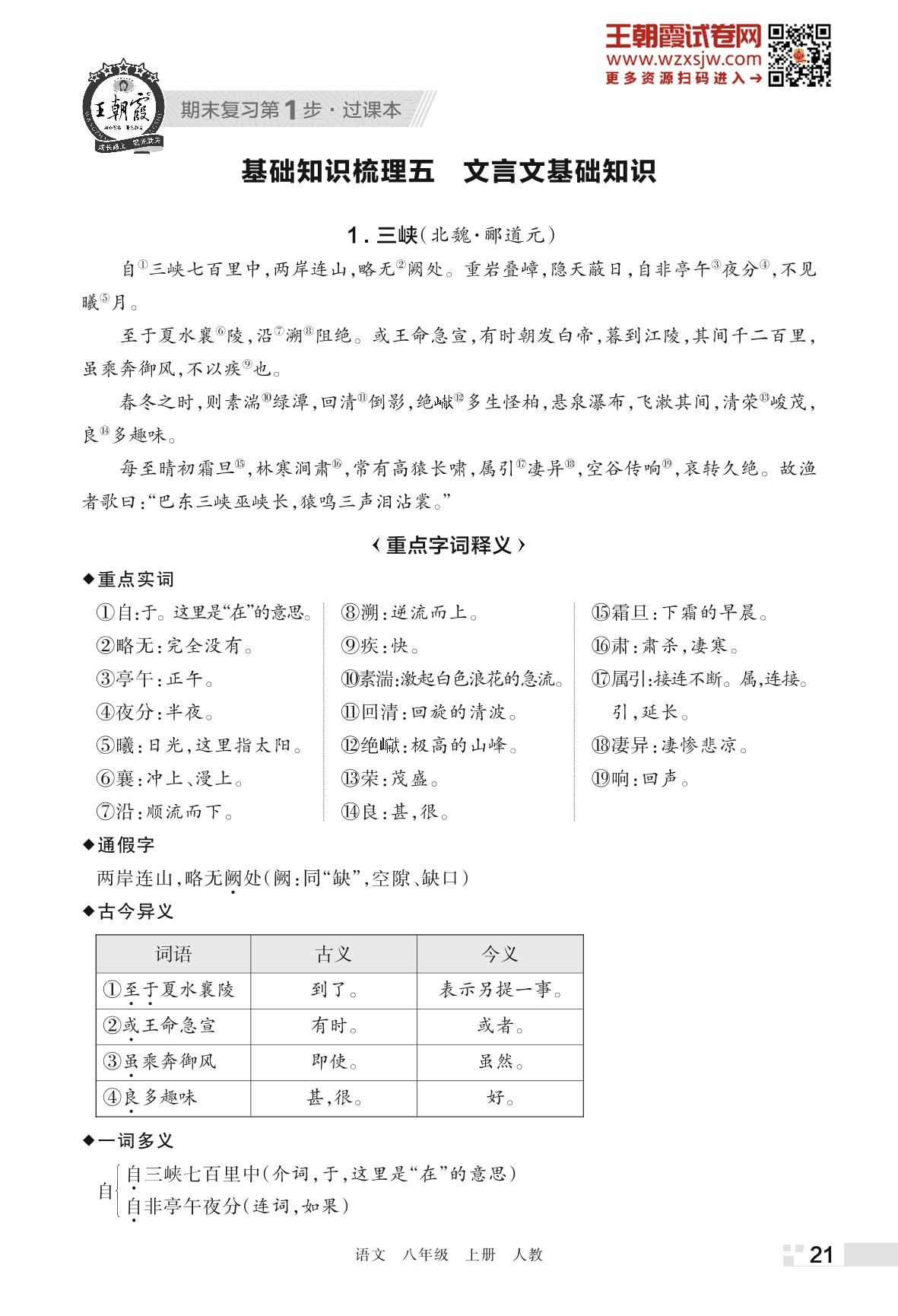 王朝霞期末过课本——基础知识梳理五 文言文基础知识八年级上册语文(人教版)_R221125114424218