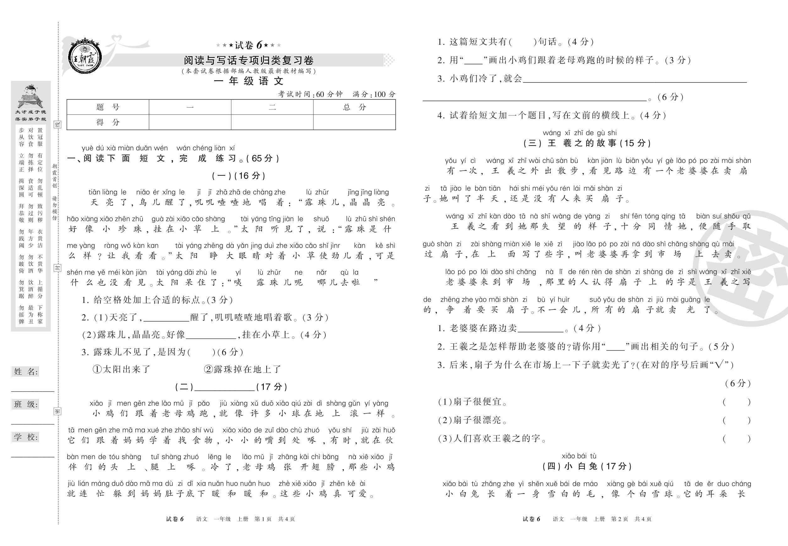 王朝霞期末专项卷一年级上册语文(人教版)_R210731184954【6】