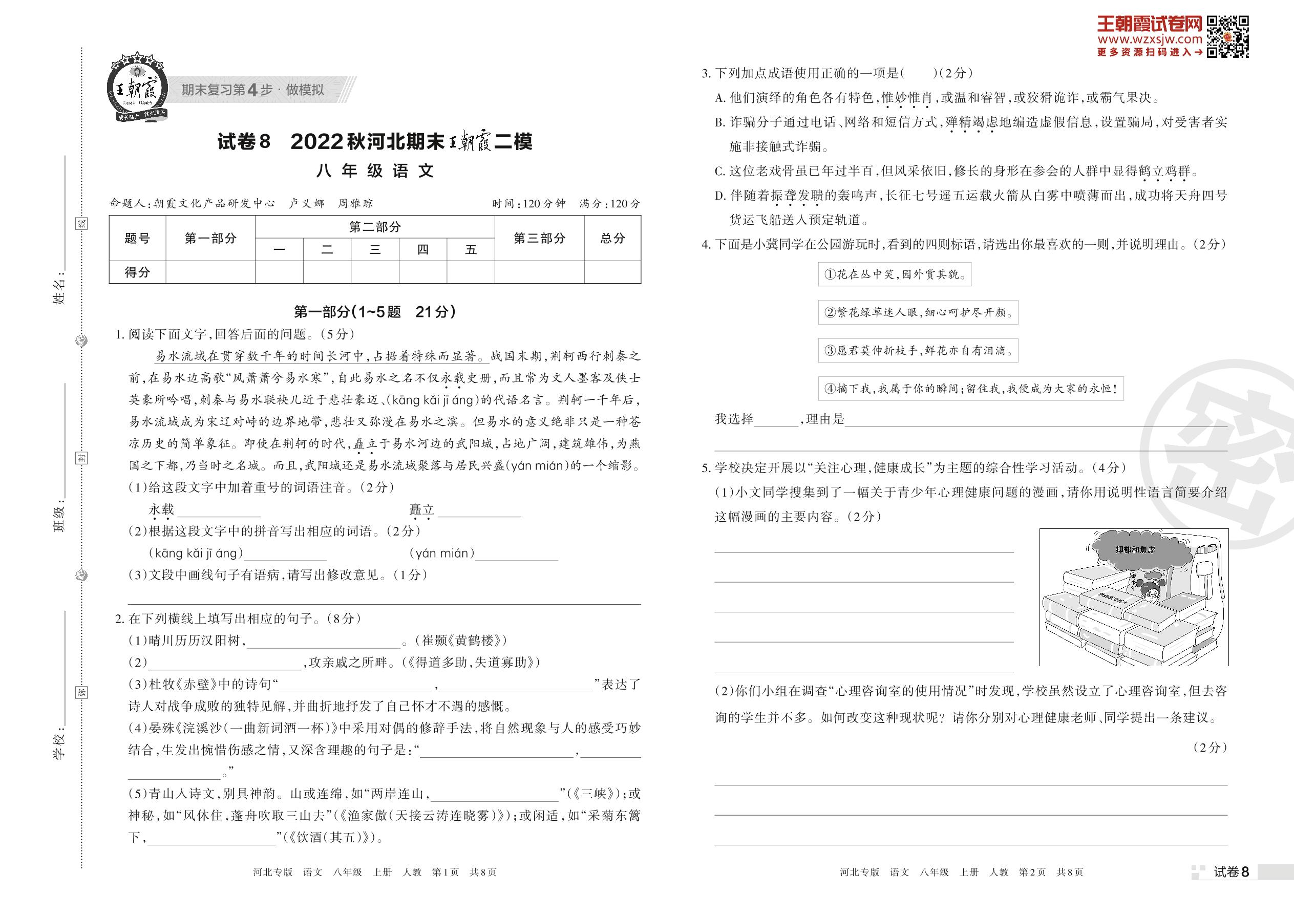 王朝霞期末模拟卷八年级上册语文(人教版)_R221125114426777【8】