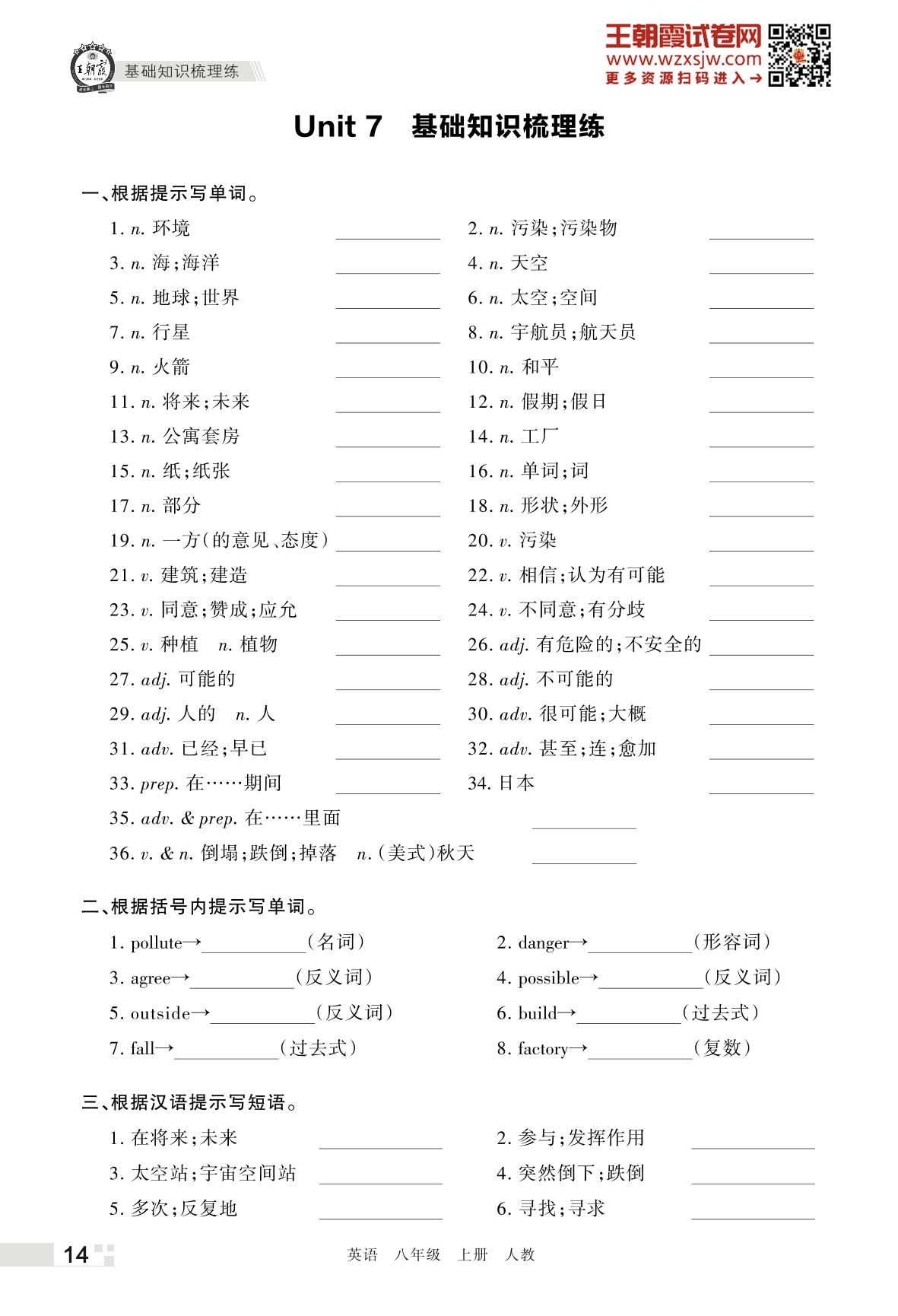 王朝霞期末过课本——Unit 7 基础知识梳理练八年级上册英语(人教版)_R221125115213741