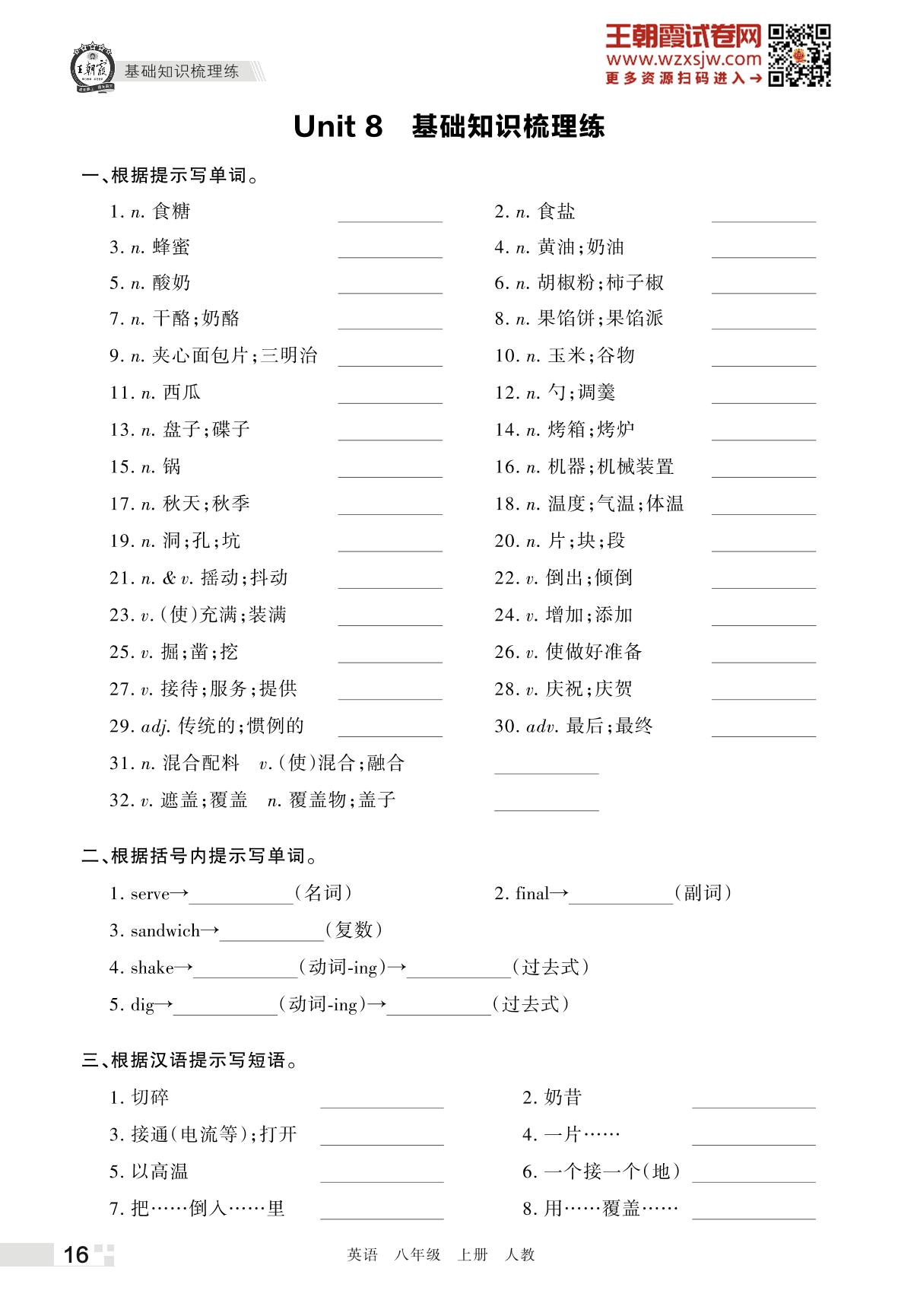 王朝霞期末过课本——Unit 8 基础知识梳理练八年级上册英语(人教版)_R221125115214898