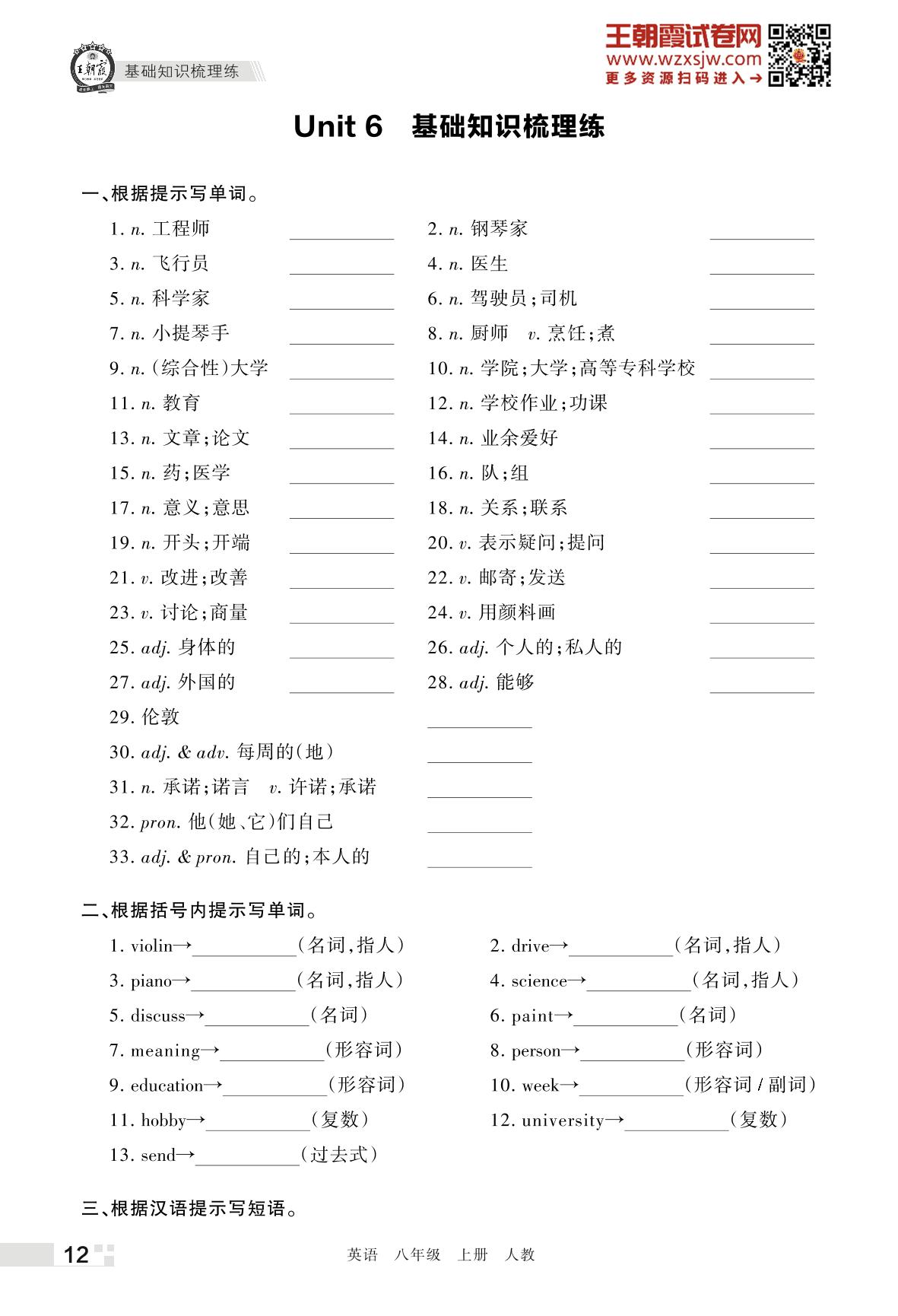 王朝霞期末过课本——Unit 6 基础知识梳理练八年级上册英语(人教版)_R221125115214881