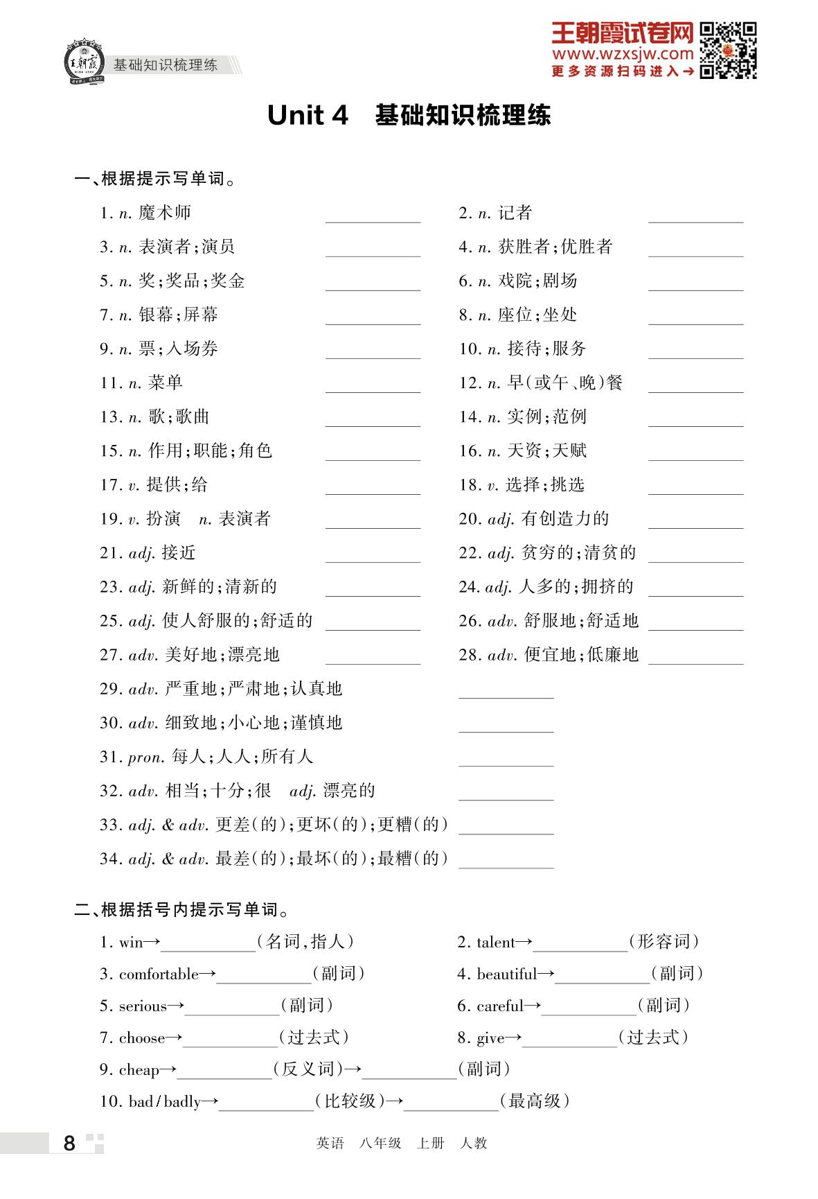 王朝霞期末过课本——Unit 4 基础知识梳理练八年级上册英语(人教版)_R221125115214190