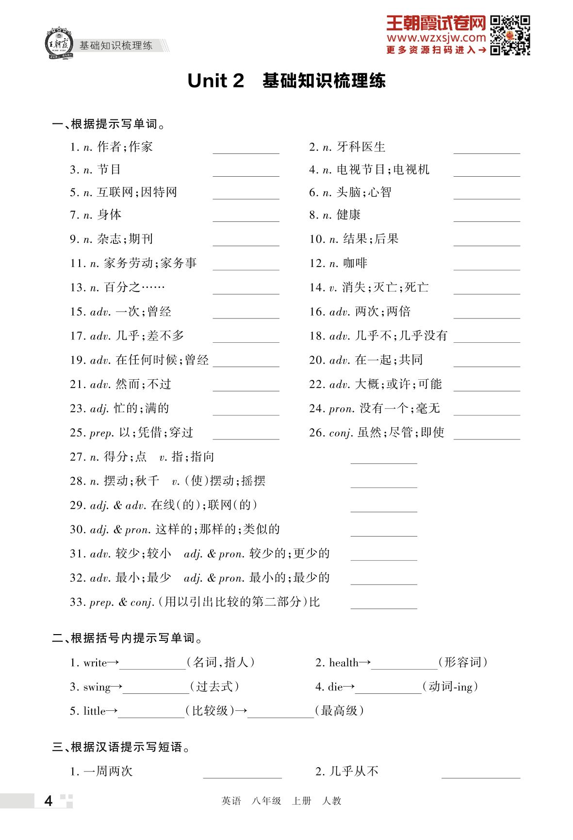 王朝霞期末过课本——Unit 2 基础知识梳理练八年级上册英语(人教版)_R221125115214800