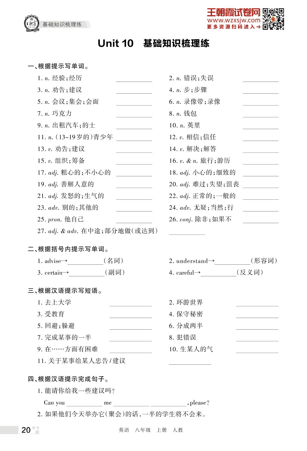 王朝霞期末过课本——Unit 10 基础知识梳理练八年级上册英语(人教版)_R221125115214051