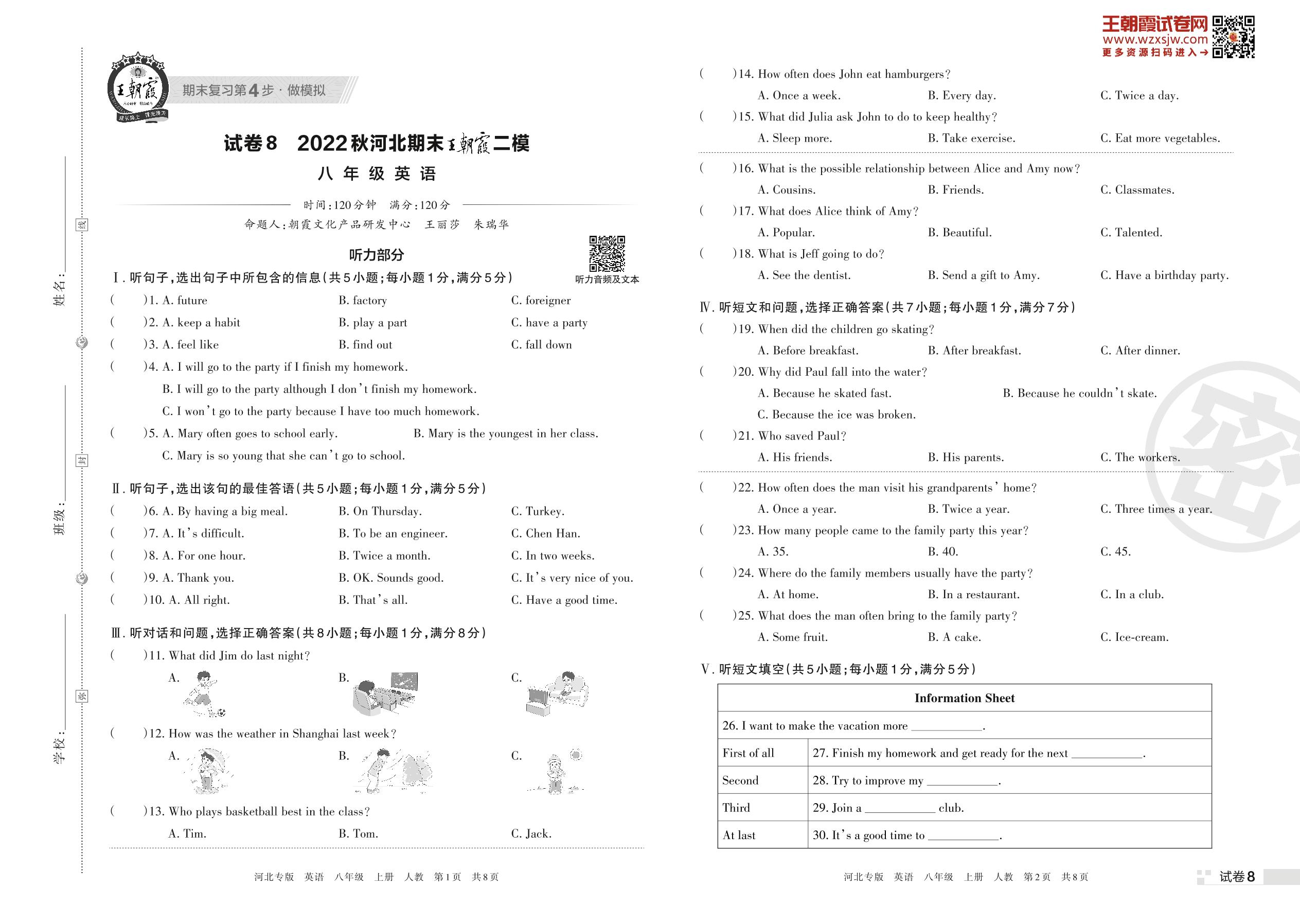 王朝霞期末模拟卷八年级上册英语(人教版)_R221125115216493【8】