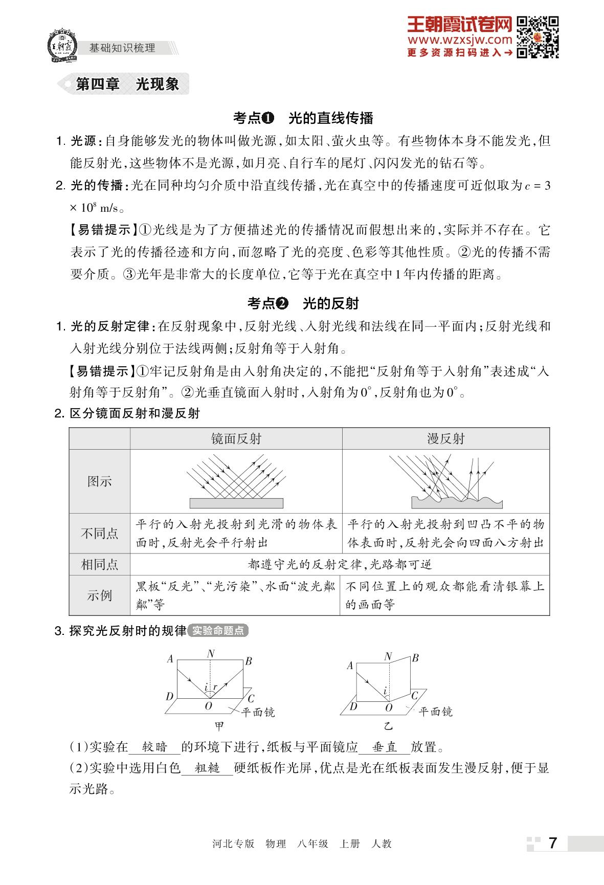 王朝霞期末知识梳理——第四章 光现象八年级上册物理(人教版)_R221125120059207