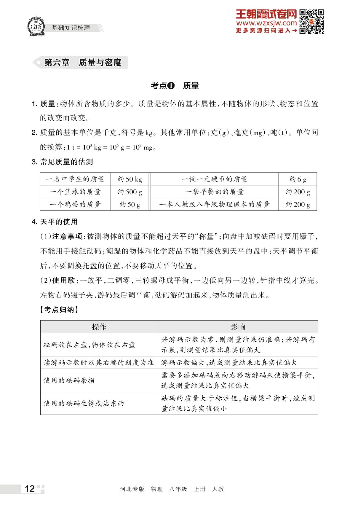 王朝霞期末知识梳理——第六章 质量与密度八年级上册物理(人教版)_R221125120059356
