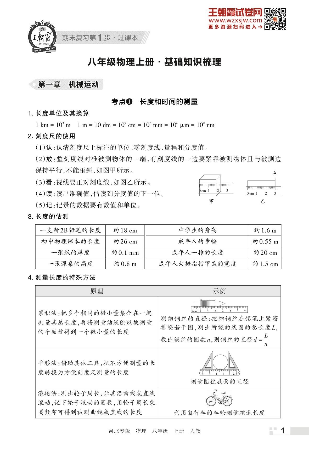 王朝霞期末知识梳理——第一章 机械运动八年级上册物理(人教版)_R221125120100997