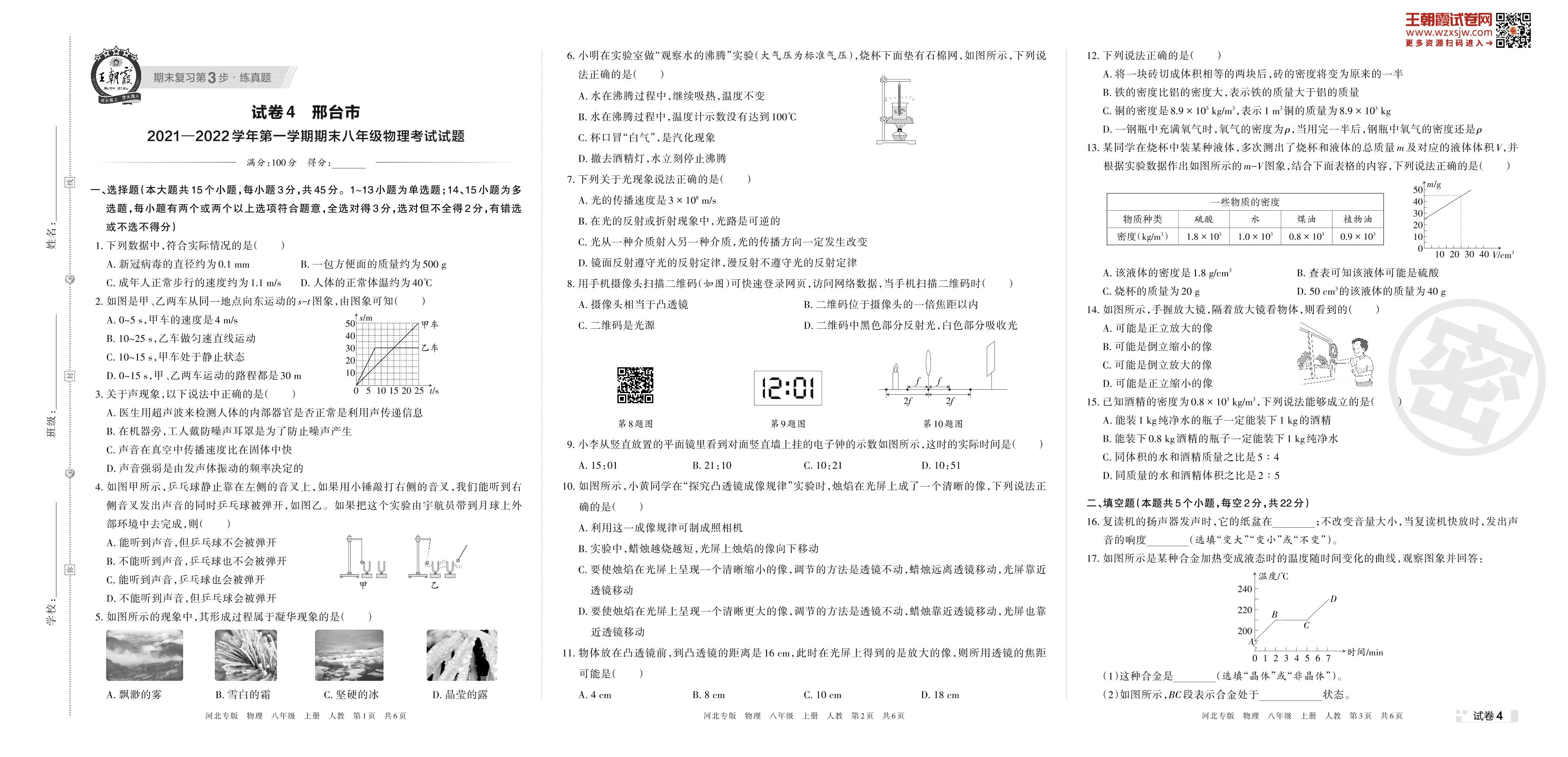 八年级物理人教版上册期末卷
