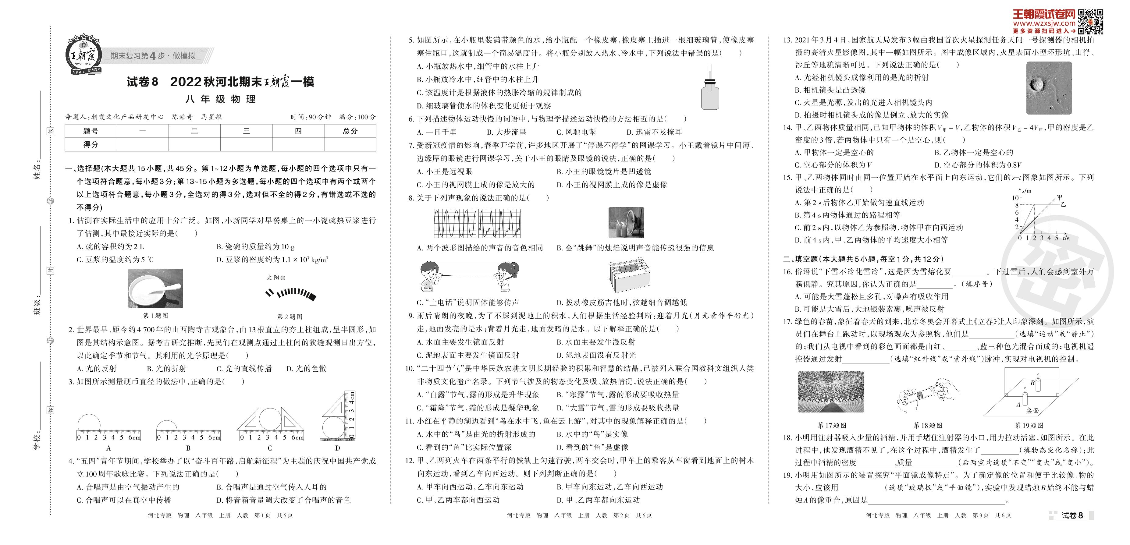 王朝霞期末模拟卷八年级上册物理(人教版)_R221125120102041【8】