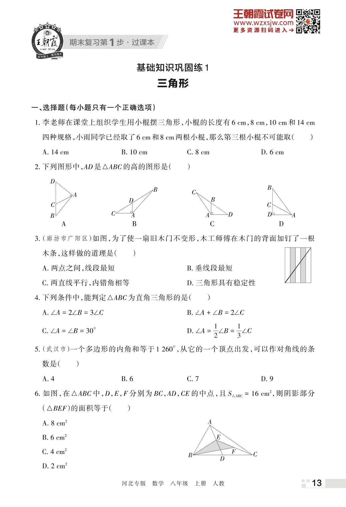 王朝霞期末过课本——基础知识巩固练1 三角形八年级上册数学(人教版)