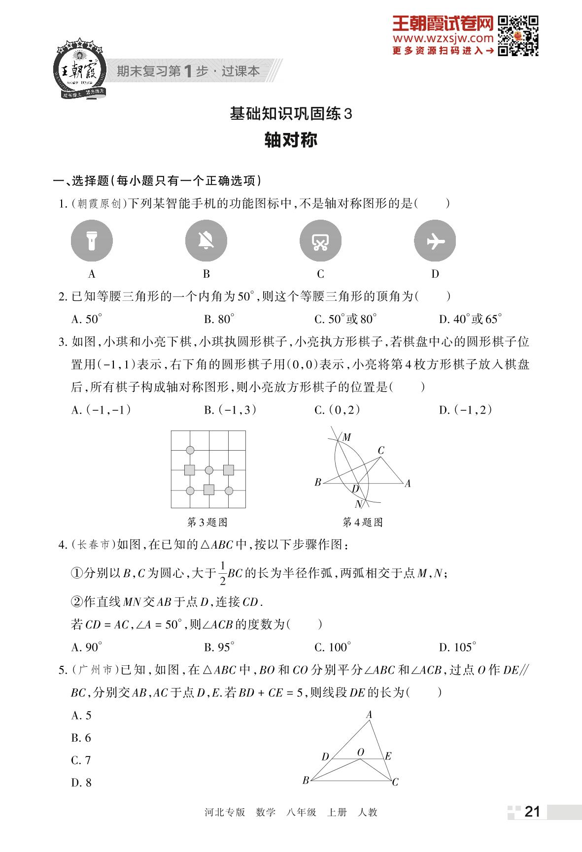 王朝霞期末过课本——基础知识巩固练3 轴对称八年级上册数学(人教版)
